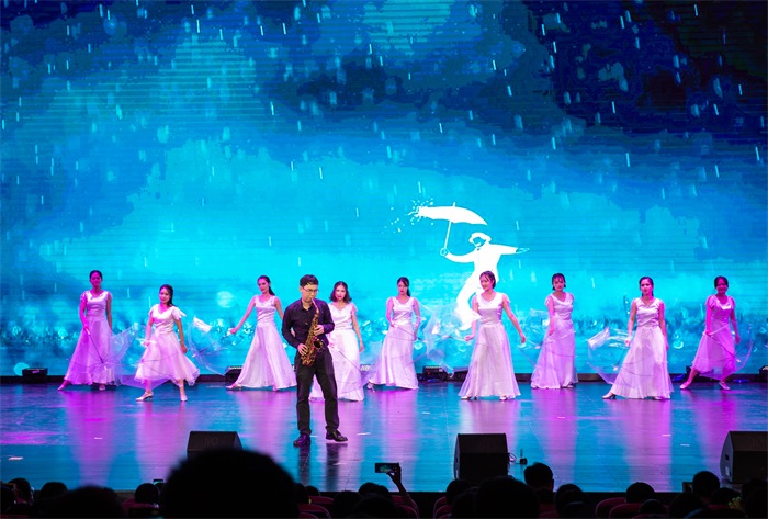 文艺汇演中,全体学员带来了精彩纷呈的文艺演出。17个形式多样的文艺节目悉数登台,既有大气磅礴的合唱,也有顿挫有力的诗歌朗诵;既有婀娜多姿的古典舞,也有动感力量的街舞表演;既有优雅动听的钢琴独奏、萨克斯演奏,也有幽默风趣的小品。舞台表演巧妙融入地方特色和广西农信元素,引来阵阵欢呼和掌声,直播评论区也掀起互动高潮。