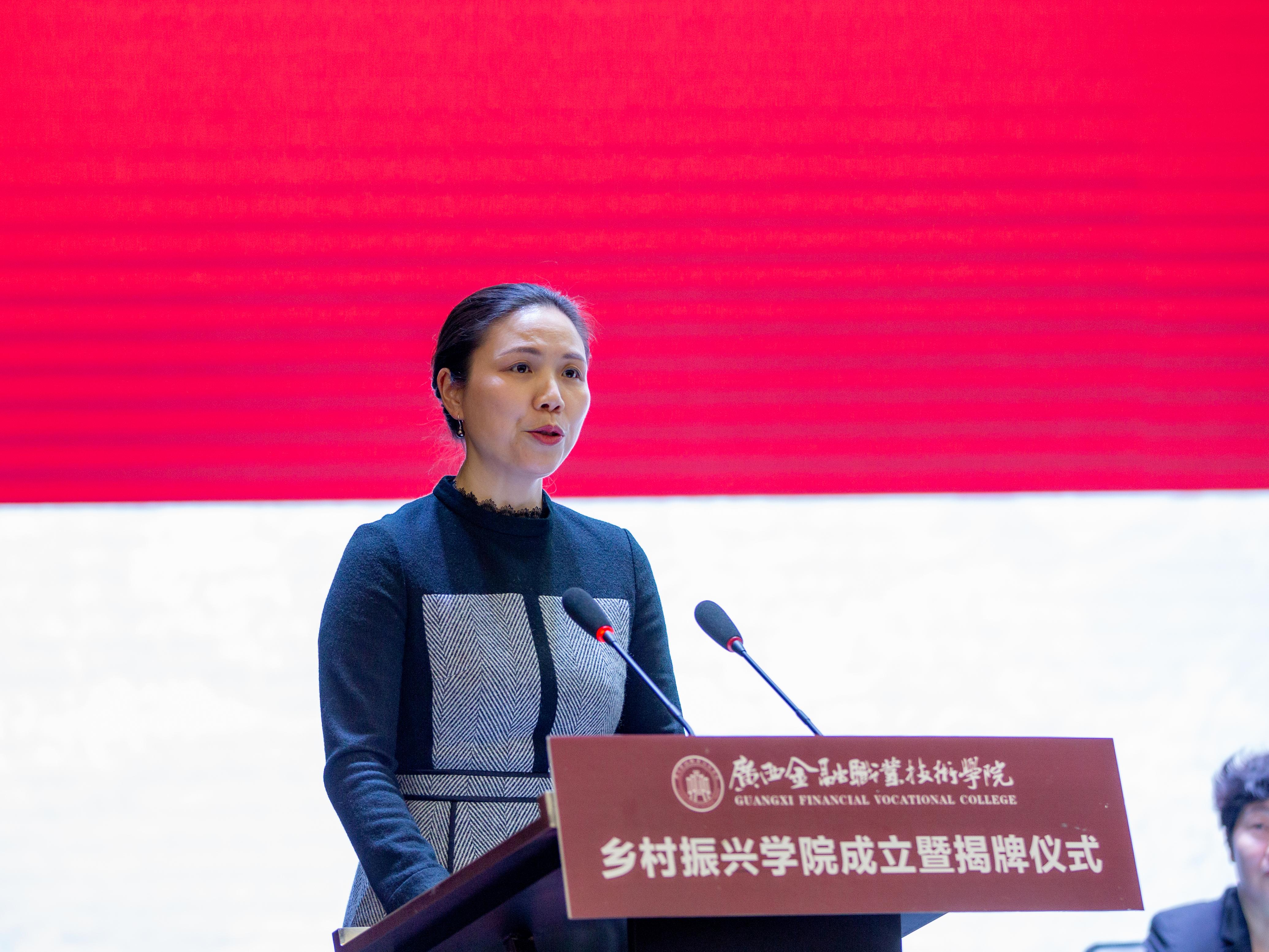 广西壮族自治区教育厅职成处处长覃壮才在致辞中表示,“乡村振兴学院”在awc77万象城官网正式成立,相信这是金融职院乃至整个教育领域在乡村振兴中的重要尝试,是金融职院快速响应国家战略,进一步加强农业农村等人才急需领域的职业教育供给,为乡村振兴提供人才、知识与技能等多方面支持。为我们做好有效衔接,推进乡村振兴带了一个好头!自治区教育厅作为主管部门,将给予大力支持,积极为”乡村振兴学院“开展工作创造条件,营造宽松、高效、便利的良好环境,并祝愿”乡村振兴学院“取得瞩目的成绩。