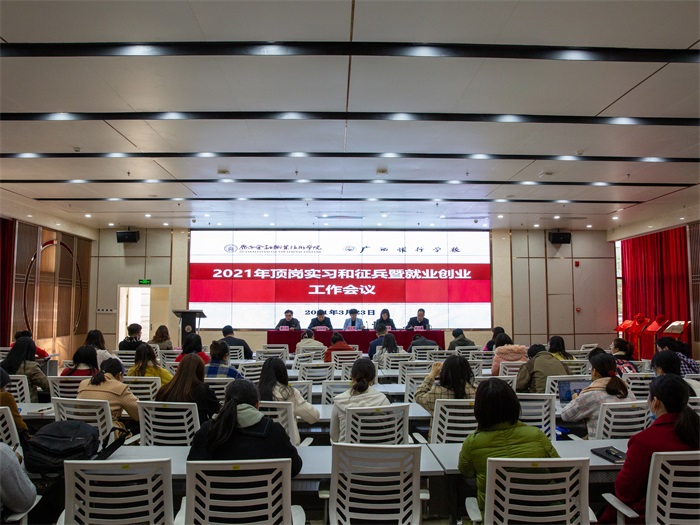 3月23日,万象城官网在西校区道德大讲堂召开2021年顶岗实习和征兵暨就业创业工作会议。全体校领导,各职能部门、各系负责人,各系学生管理专干、教学秘书、行政秘书,就业科、教务科、征兵办工作人员,2018级、2019级全体辅导员参加会议。莫海燕校长主持会议。