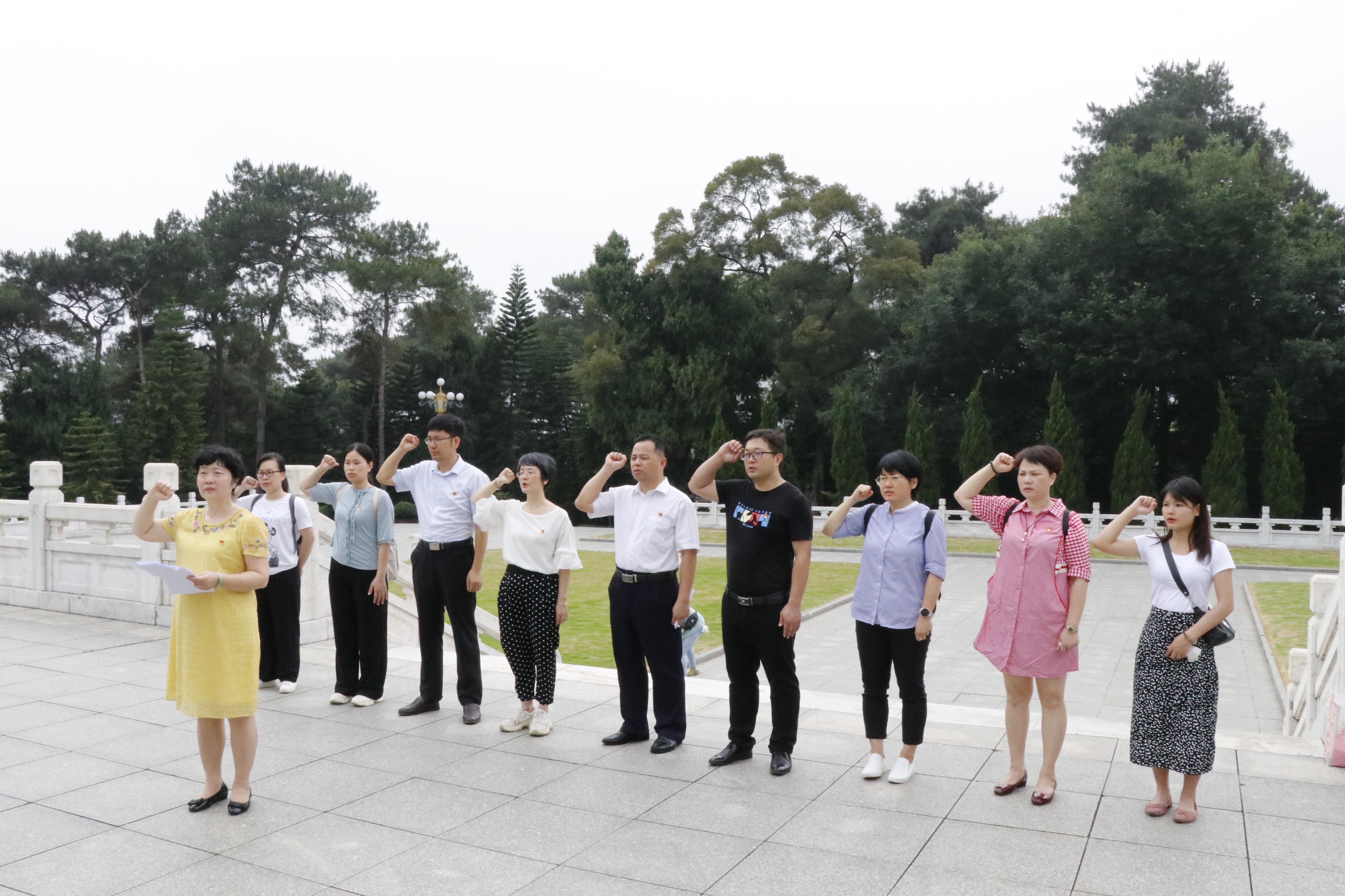 活动中,党支部全体党员佩戴党员徽章、整齐庄严列队,怀着无比崇敬的心情向革命烈士敬献花篮、致敬默哀,共同缅怀为国家英勇牺牲的革命先辈。随后,支部党员一一向烈士敬献鲜花,寄托哀思。党支部书记魏涛介绍了1958年毛主席在南宁接见广西各族人民的故事。全体党员在烈士纪念碑前,重温了入党誓词。铿锵激昂的誓词,充分表达出全体党员不忘初心,为党的事业奋斗终身的决心和信心。