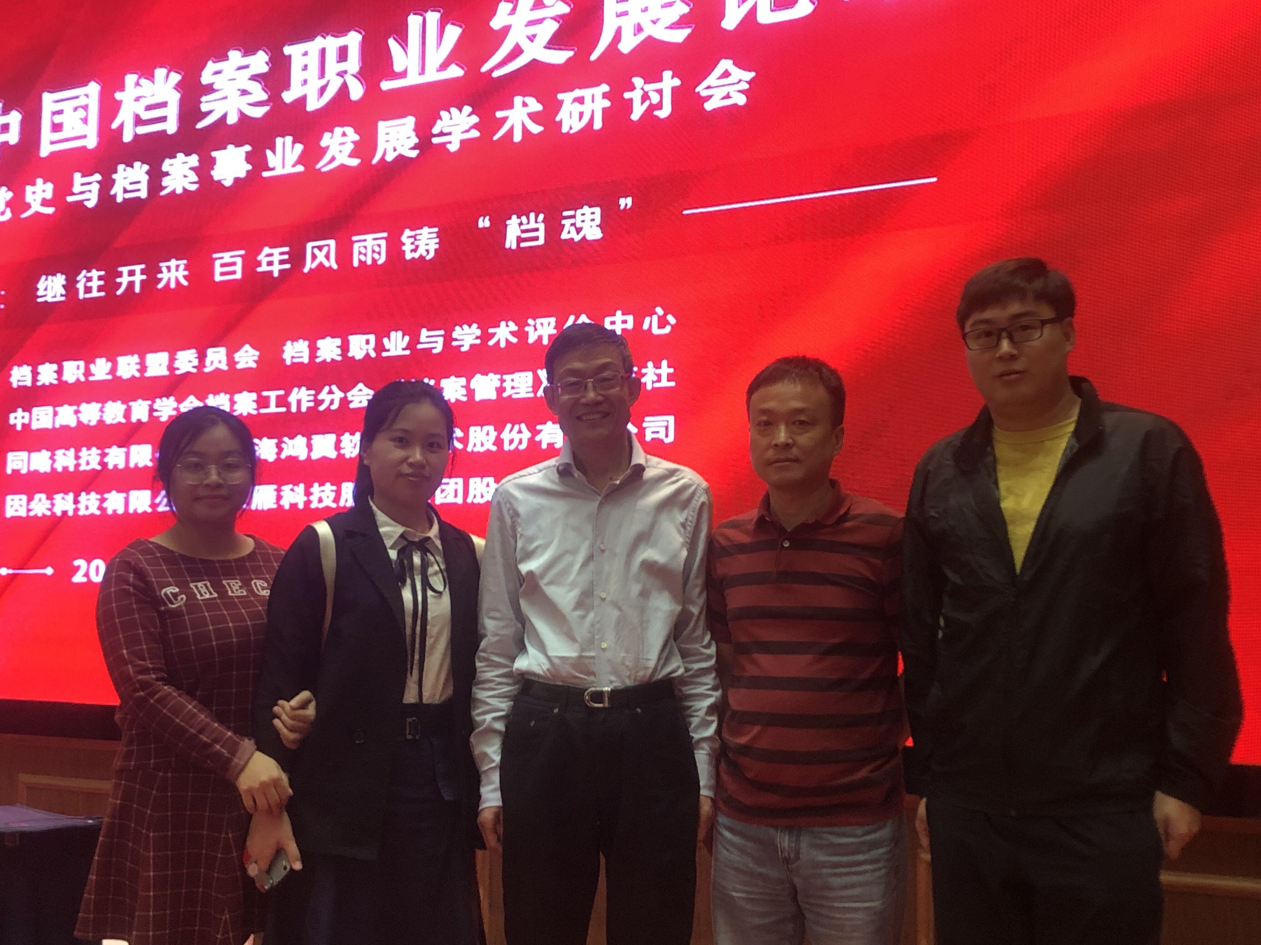 万象城官网与会人员与国家档案局原局长、中央档案馆原馆长、中国档案学会理事长杨冬权(中)合影留念
