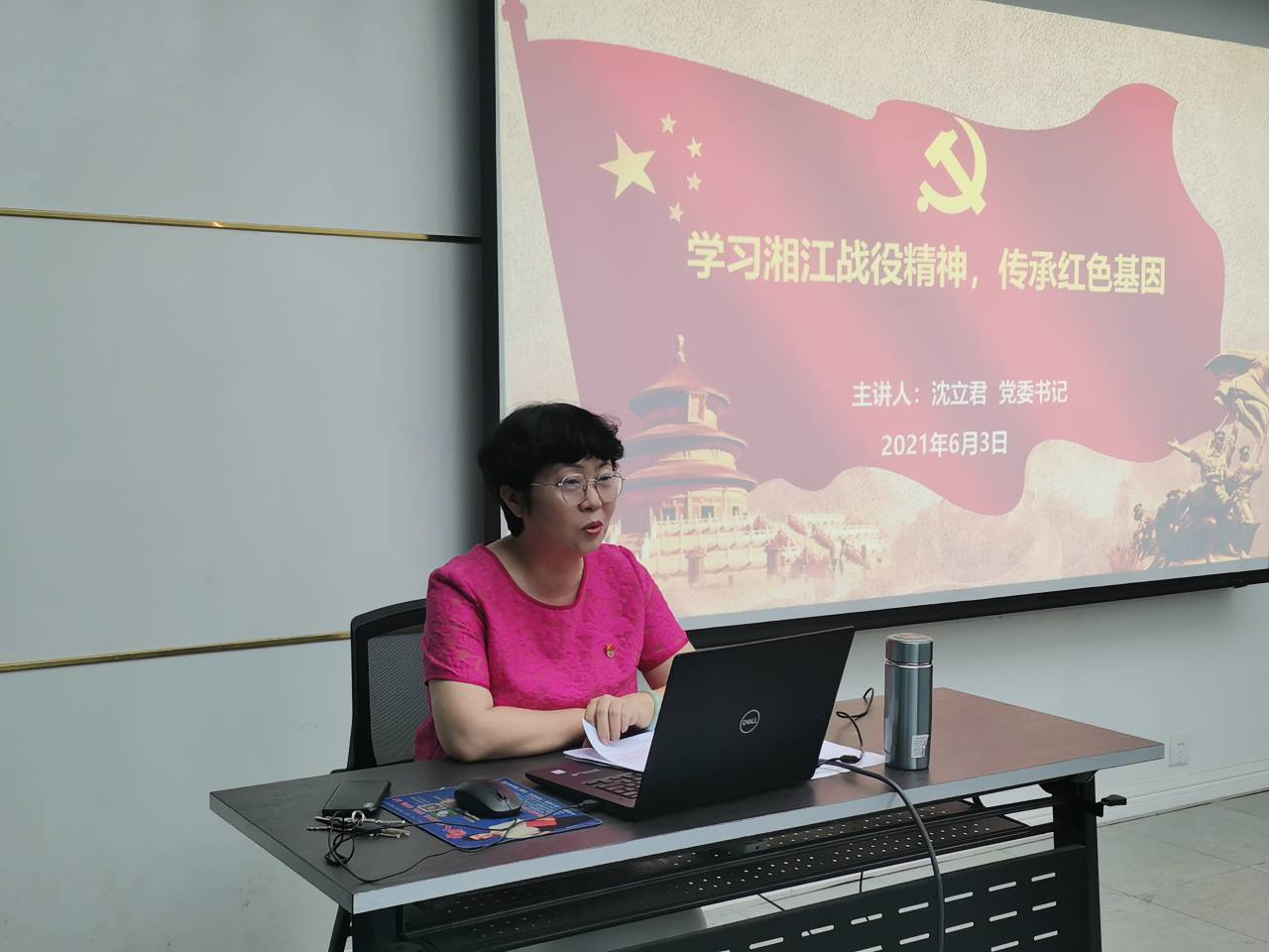 课上,沈立君书记从湘江战役的悲壮历史、湘江战役的伟大历史意义、湘江战役的启示、传承湘江战役精神,走好新时代长征路等四个方面进行授课,采取图文、视频结合的方式生动详细讲述了湘江战役的历史背景、中央红军的战前准备、战斗结果等情况,对湘江战役的教训和意义进行分析,同时结合当前情况分析党员同志如何在当下弘扬红军将士在湘江战役体现出的“勇于胜利、勇于突破、勇于牺牲”的精神。沈书记指出,湘江战役的硝烟虽然已经远去,但是红军的长征精神永存。我们回望这段历史,既是为了缅怀革命先烈,更是为了传承革命精神,从中汲取砥砺前行的力量。