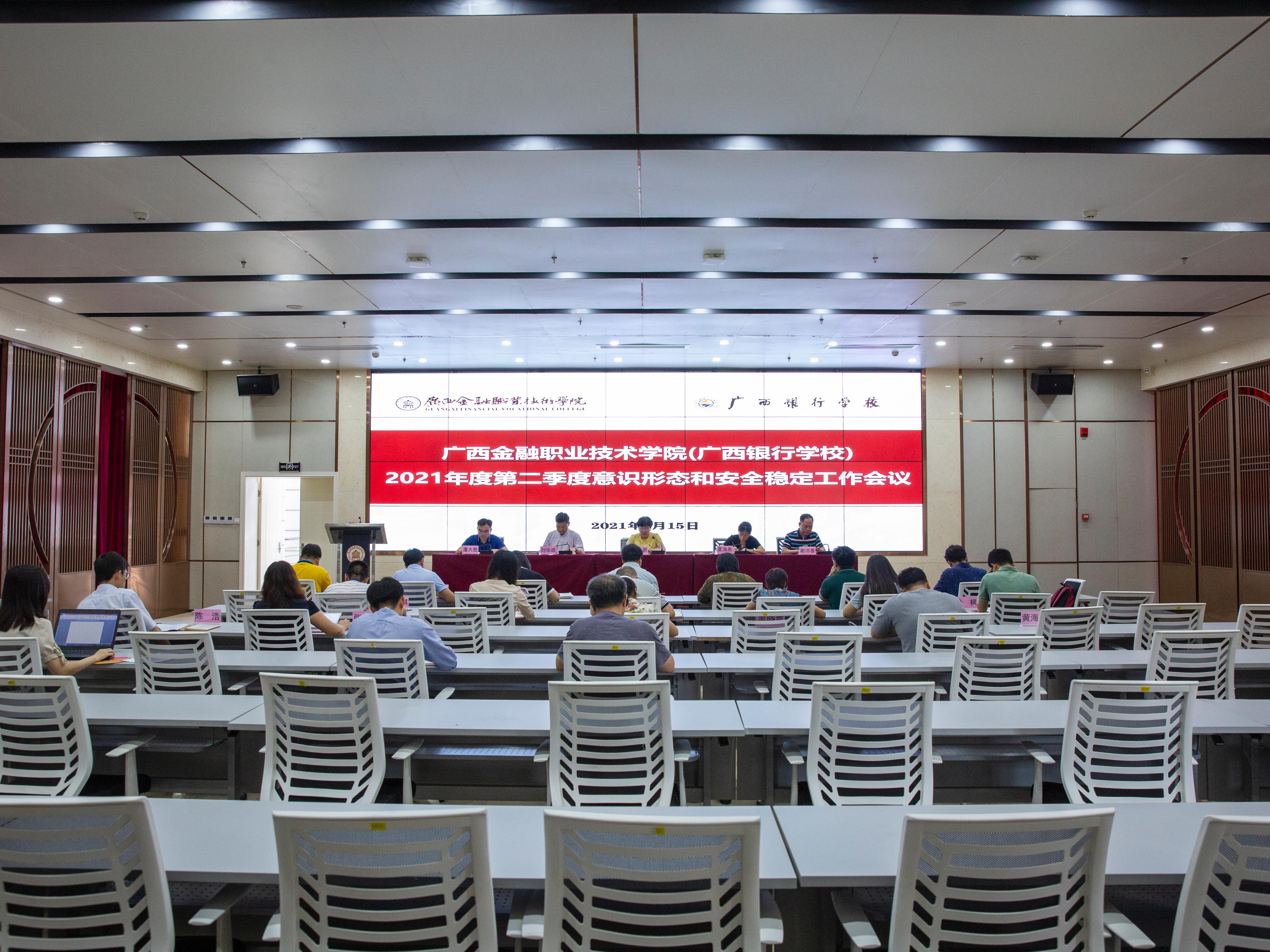 6月15日下午,万象城官网在西校区道德大讲堂召开第二季度意识形态和安全稳定工作会议,学校领导、各党支部书记及各二层单位负责人参加会议。党委书记沈立君主持会议并发言。