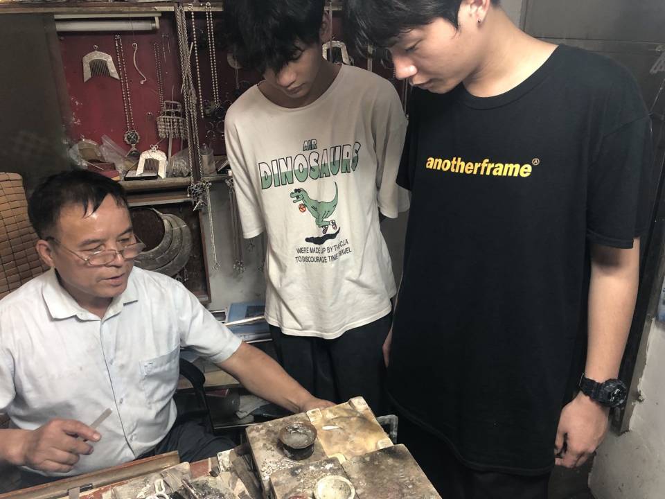 非遗物质文化遗产传承人向师生展示非遗技艺
