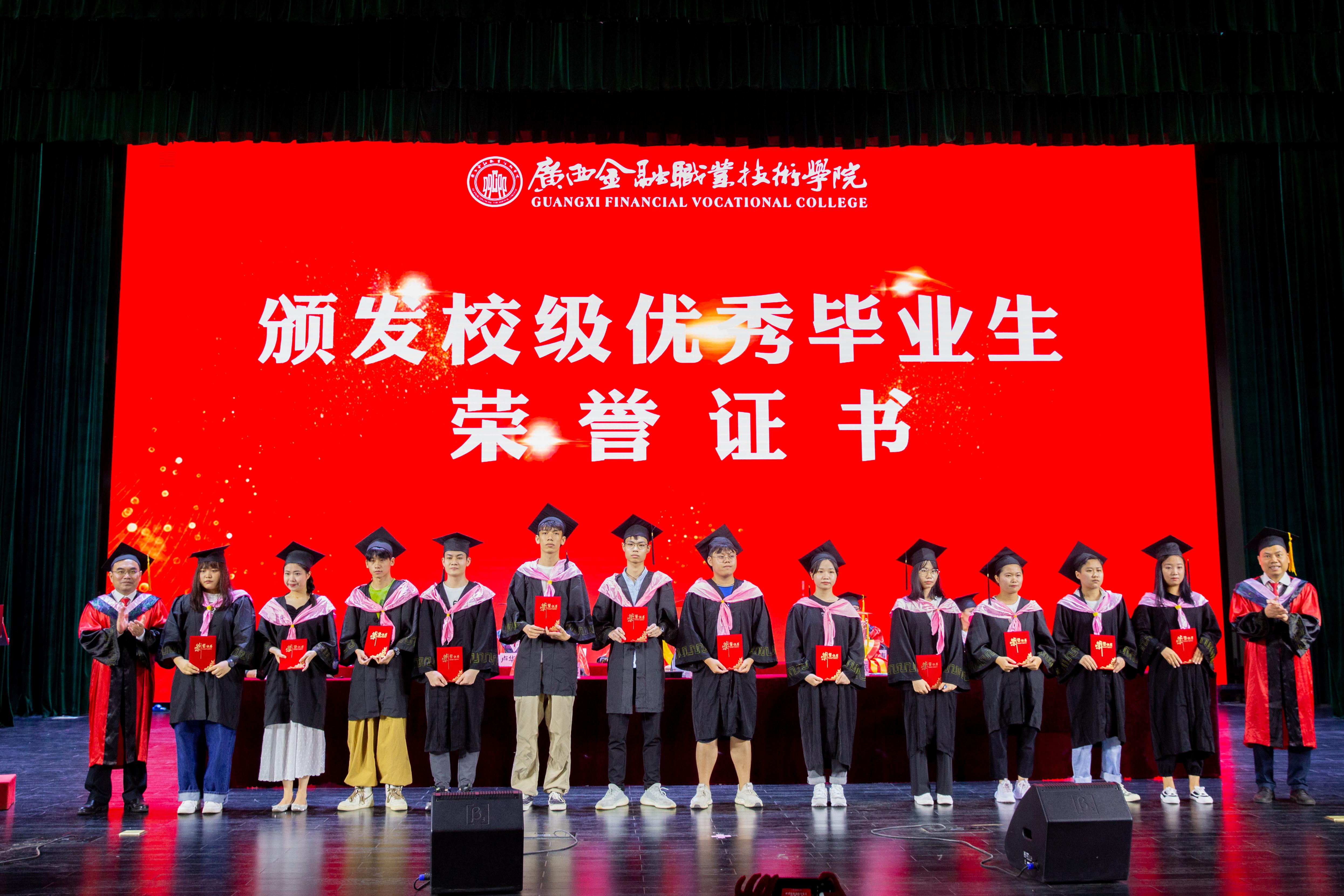 万象城官网领导宣读了《广西壮族自治区级优秀毕业生表彰决定》《awc77万象城官网优秀毕业生表彰决定》,并为荣获自治区优秀毕业生及校级优秀毕业生的同学颁发荣誉证书。