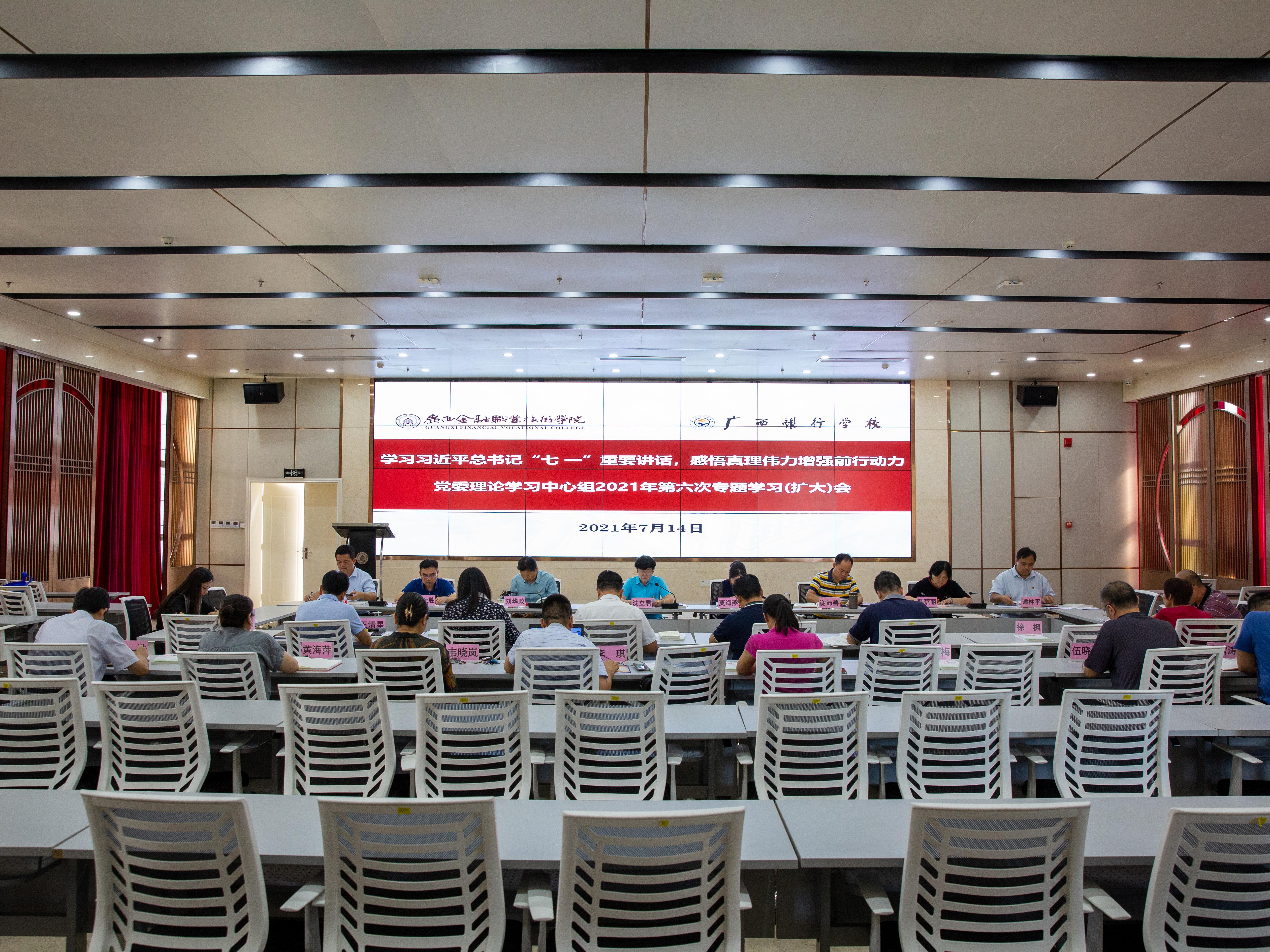 7月14日下午,万象城官网党委理论学习中心组在西校区道德大讲堂召开2021年第六次专题学习(扩大)会。会议以《学习习近平总书记“七一”重要讲话,感悟真理伟力增强前行动力》为主题,深入学习贯彻习近平总书记在庆祝中国共产党成立100周年大会上的重要讲话精神。党委理论学习中心组成员、学校领导、各党支部书记及各单位负责人参加了会议,会议由党委书记沈立君主持。