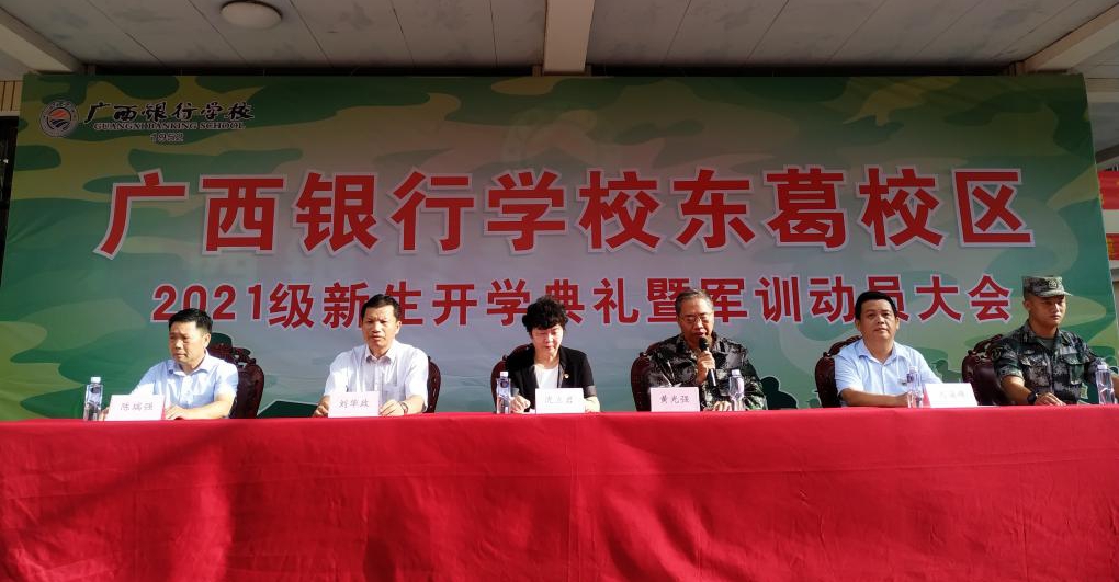 8月28日,广西银行学校2021级学生开学典礼暨军训动员大会在万象城官网东葛校区举行。万象城官网领导、全体师生及新生军训教官参加大会。