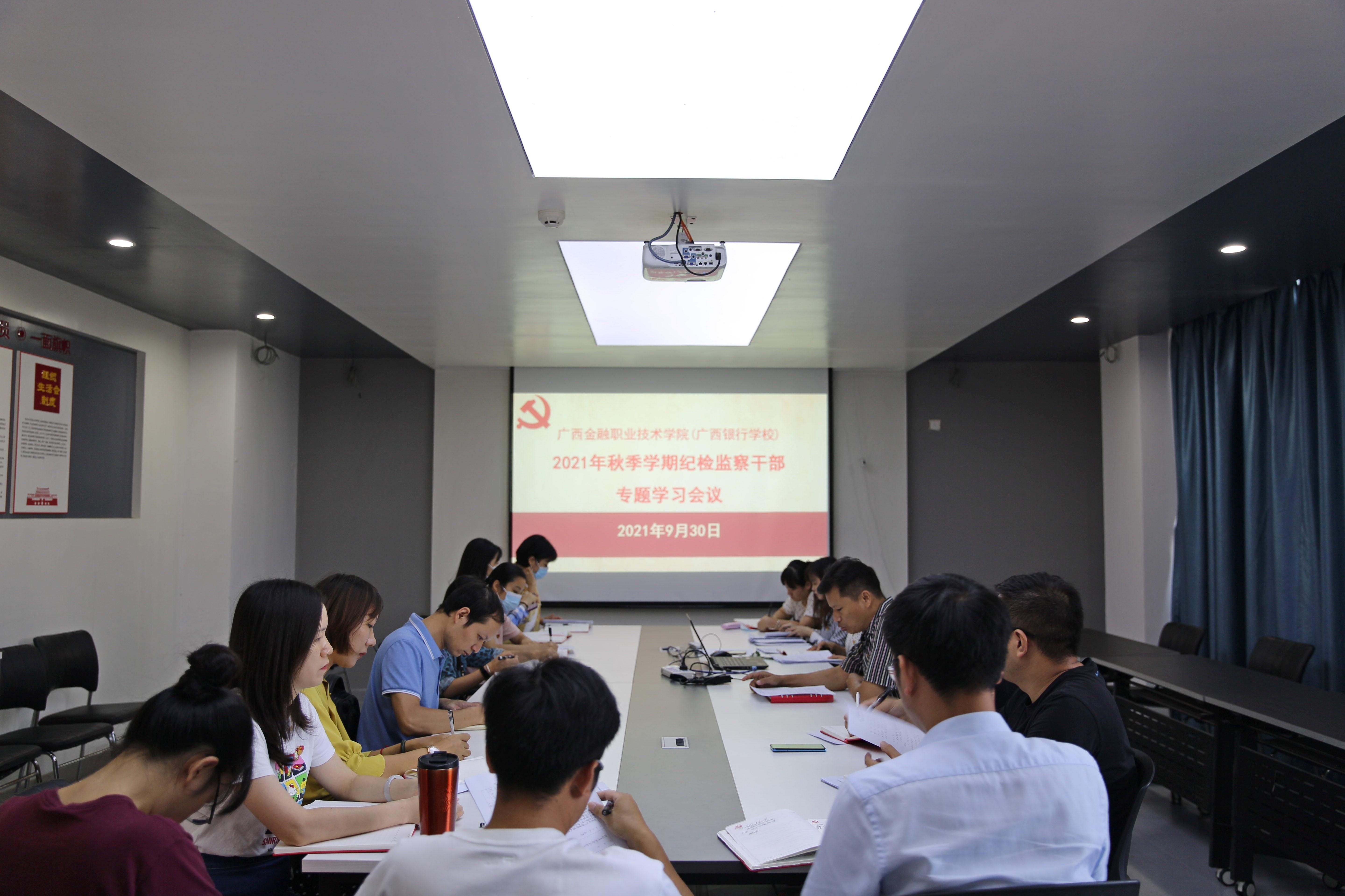 为进一步将党史学习教育和纪检业务相结合,提升纪检监察干部队伍建设,9月30日上午,万象城官网纪委召开2021年秋季学期纪检干部专题学习会,纪委委员、纪检监察专干、各党支部纪检委员参加会议。会议由校党委副书记、纪委书记刘华政同志主持。