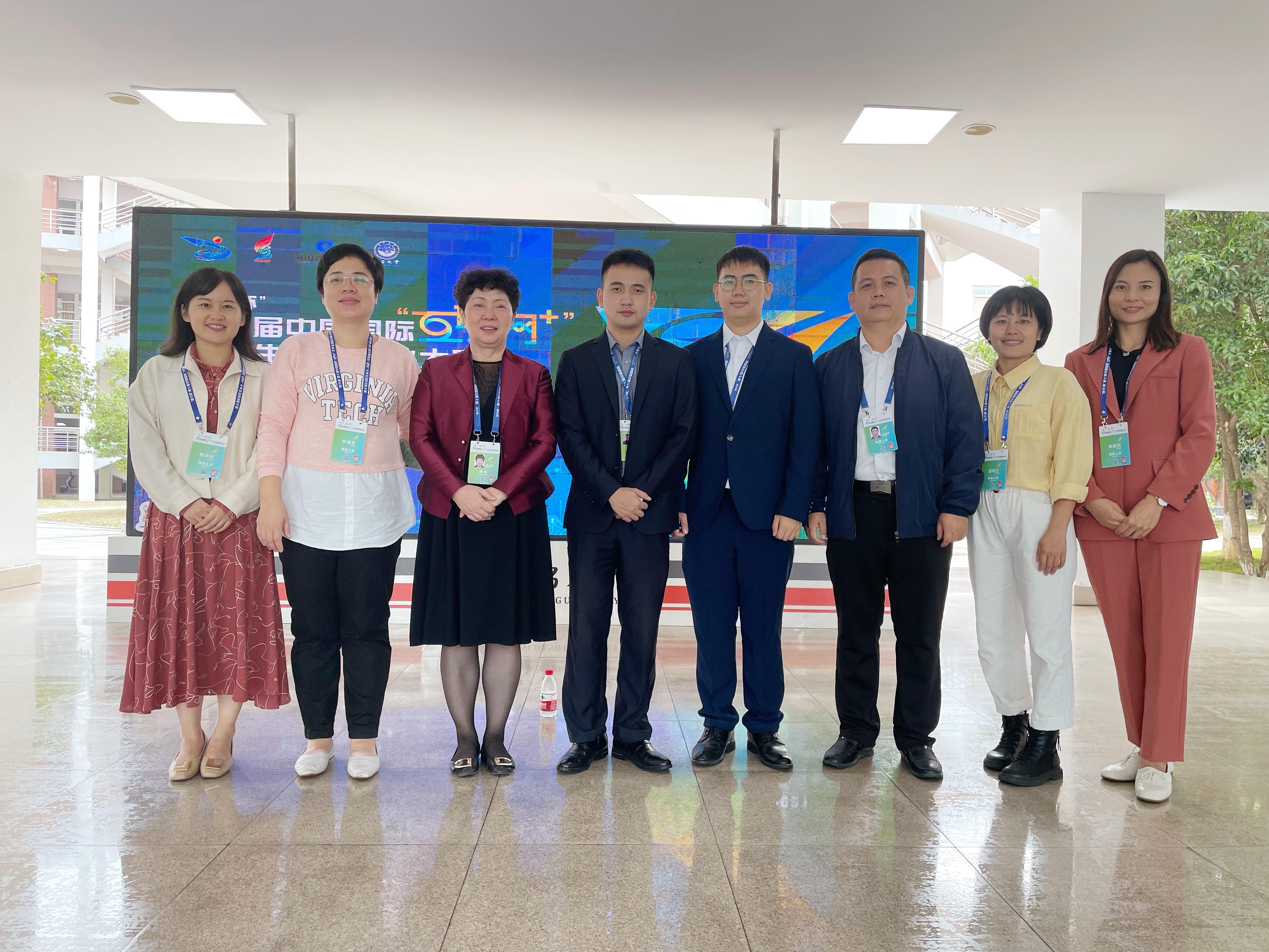 校党委书记沈立君、学生工作与招生就业处处长、校团委书记周海峰、校团委副书记朱丽君及参赛师生团队