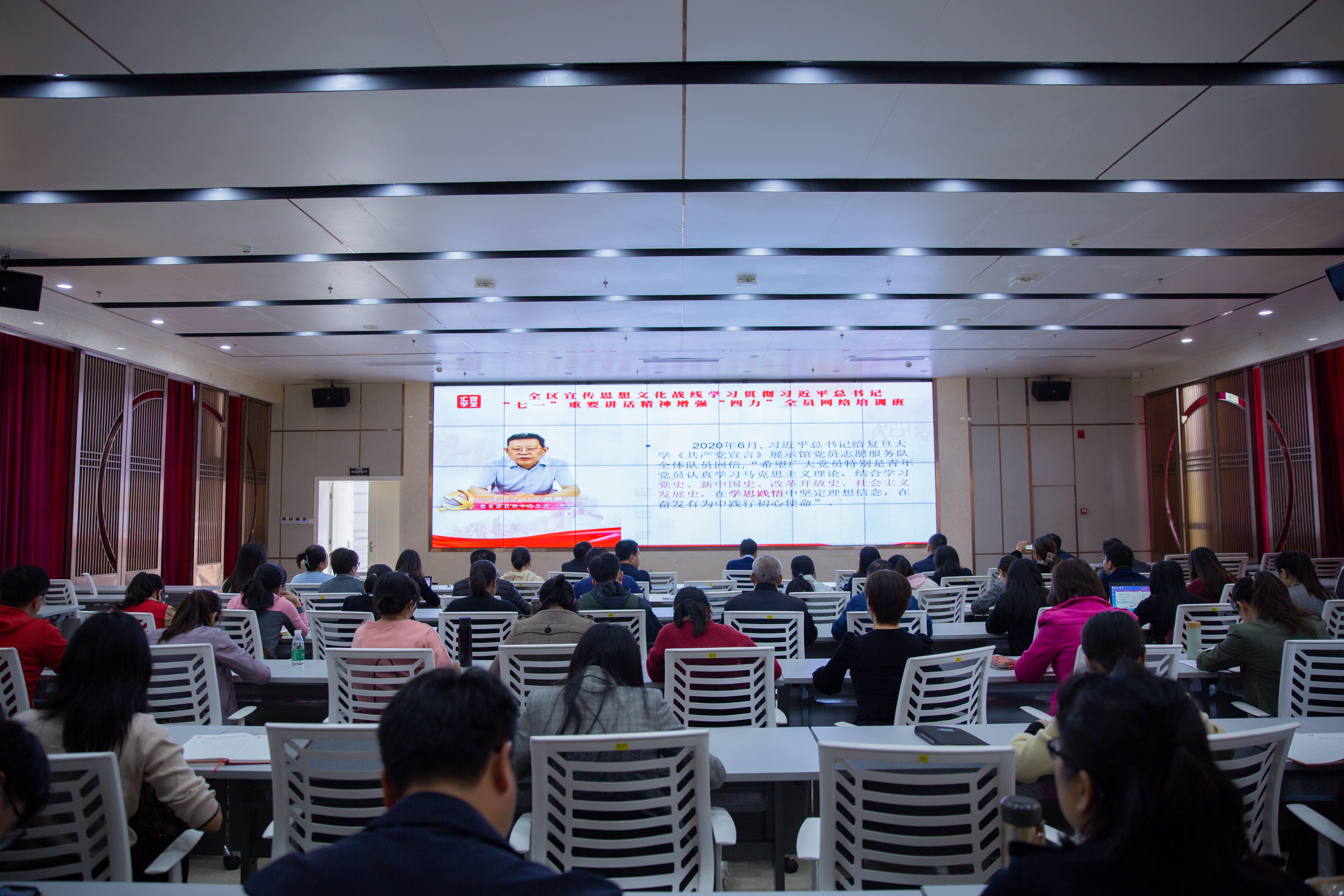 10月18日下午,万象城官网组织全体党员参加全区宣传思想文化战线学习贯彻习近平总书记“七一”重要讲话精神增强“四力”全员网络培训班,本次讲座由教育部社科中心主任王炳林教授领航讲堂,为大家带来题为“认真学习‘四史’,坚定理想信念”的精彩讲座。万象城官网全体党员通过线上形式参加。