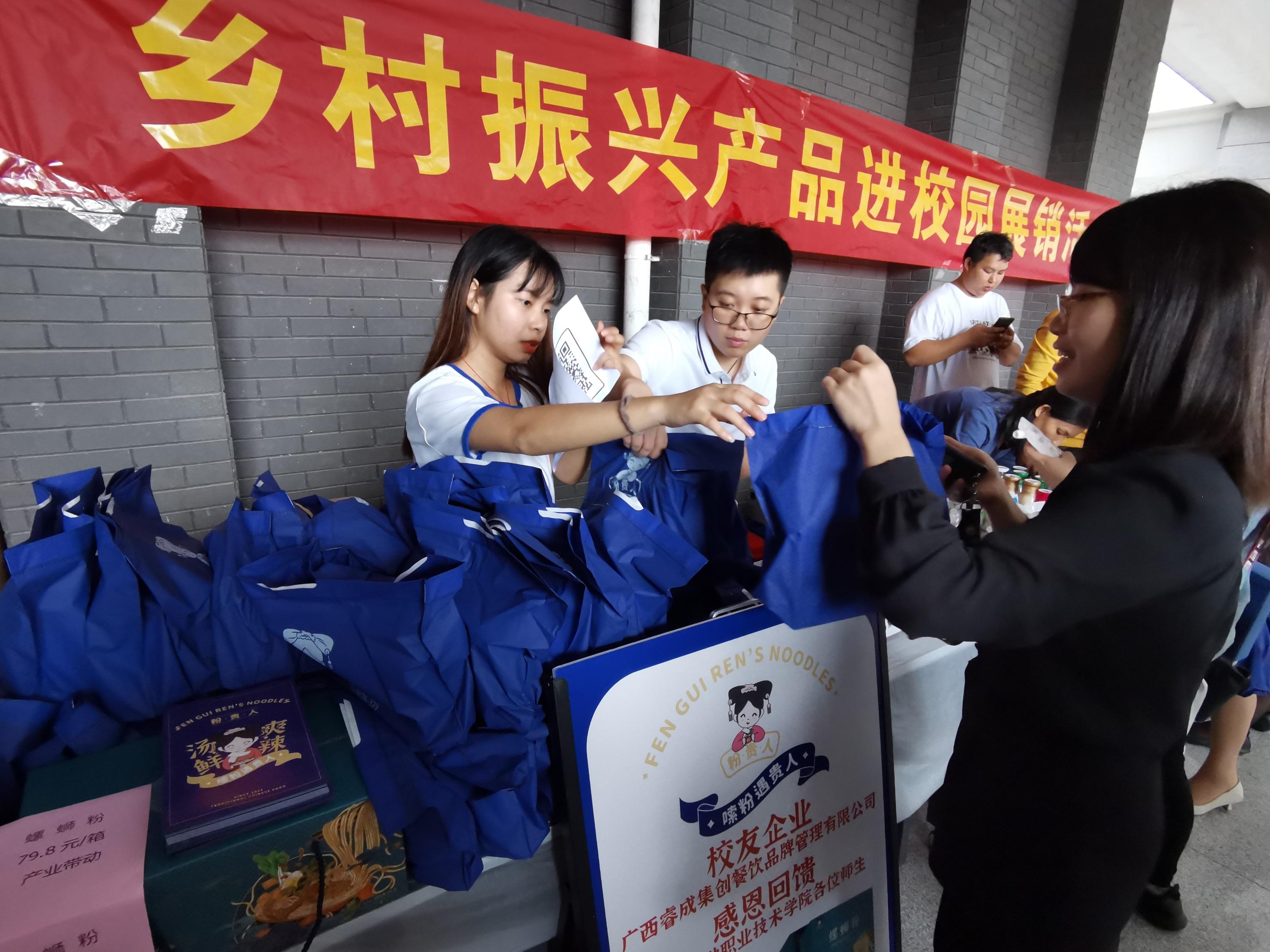 活动还邀请了万象城官网(校)优秀毕业校友广西睿成集创餐饮品牌管理有限公司成睿明董事长,带着创业团队和自创品牌“粉贵人”螺蛳粉产品回校,为学校教职工带来伴手礼感恩回馈母校。