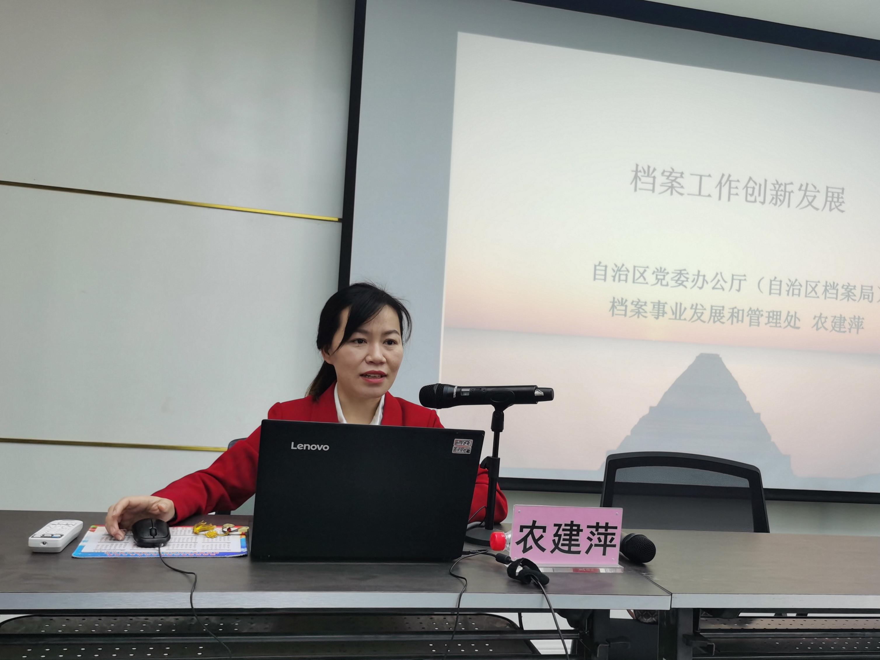 广西壮族自治区档案局档案事业发展和管理处四级调研员农建萍处长授课