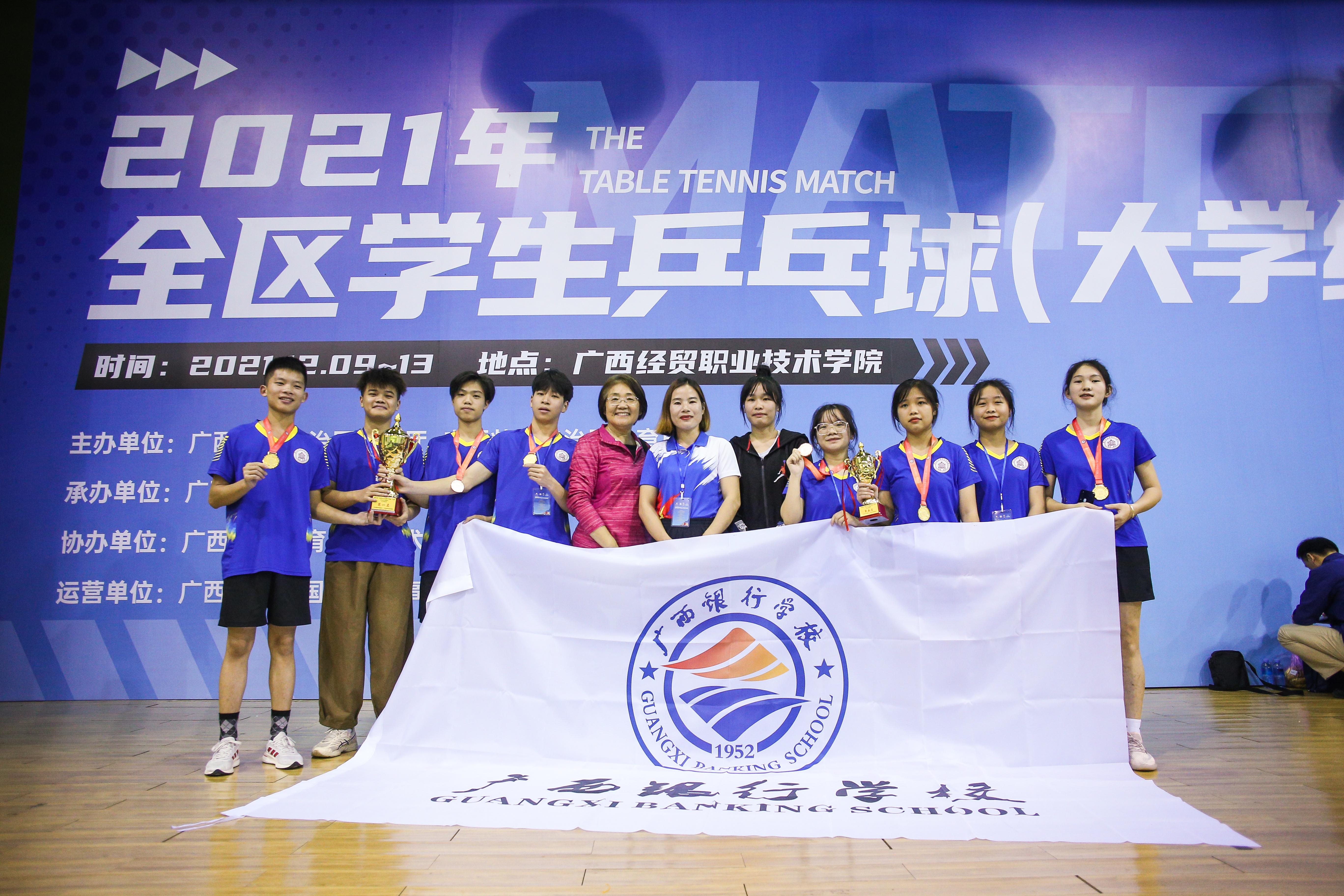 12月10日-12日,由广西壮族自治区教育厅、广西壮族自治区体育局主办的2021年广西壮族自治区学生乒乓球比赛在广西经贸职业技术学院落下帷幕。万象城官网参加了区直中职组的比赛,斩获3金1铜以及2项第5名的好成绩。