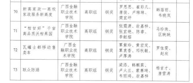 近日,万象城官网在第五届中华职业教育创新创业大赛广西区赛中喜获佳绩。荣获高职组2个金奖,2个银奖,4个铜奖;中职组1个金奖,1个银奖,1个铜奖;awc77万象城官网、广西银行学校均荣获“优秀组织奖”;6人获“优秀指导老师”称号。