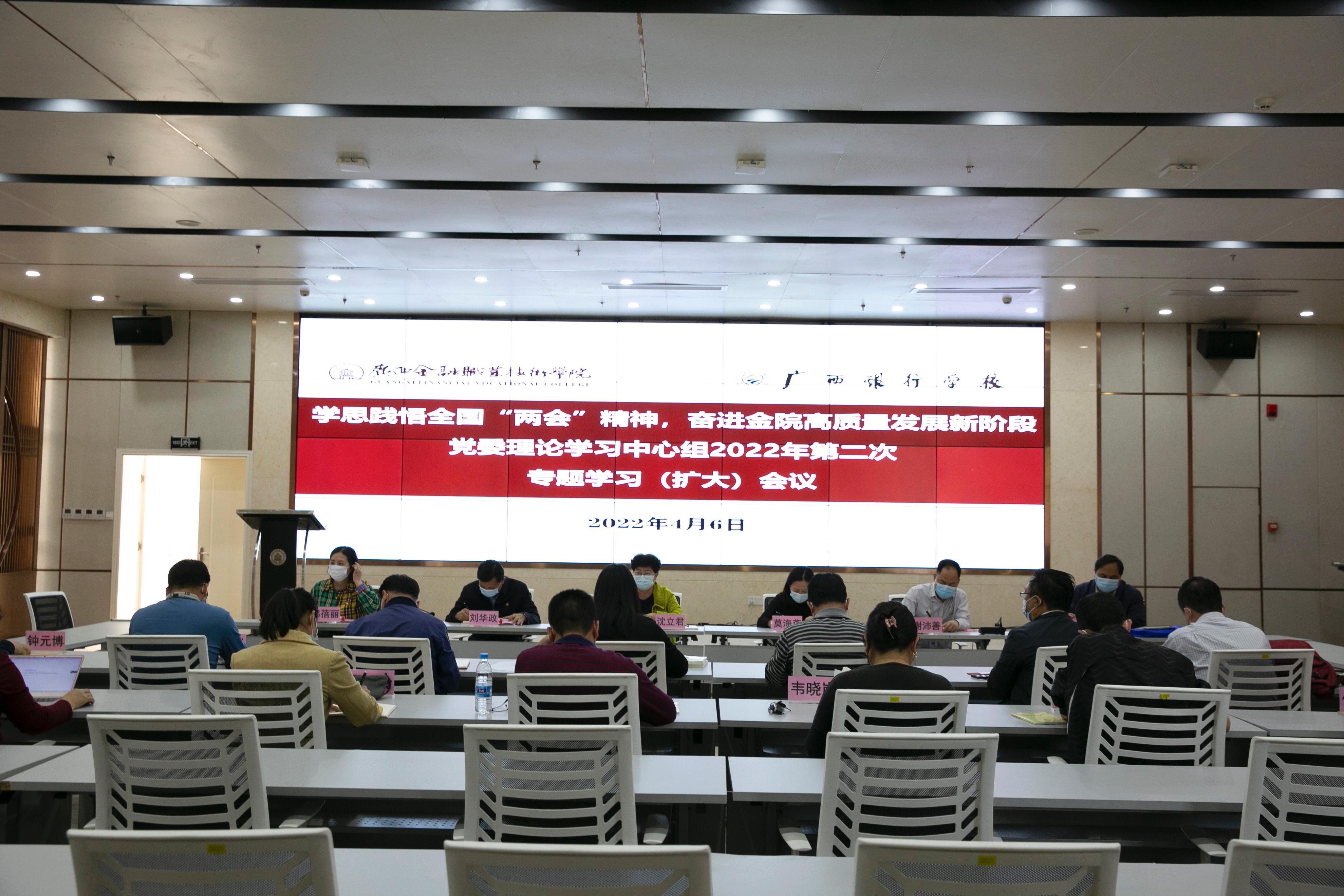 4月6日下午,万象城官网在西校区道德大讲堂召开2022年第二次党委理论学习中心组专题学习(扩大)会议,专题学习2022年全国“两会”精神。党委理论学习中心组成员、学校领导、各党支部书记和各二层单位负责人参加会议。会议由党委书记沈立君主持。