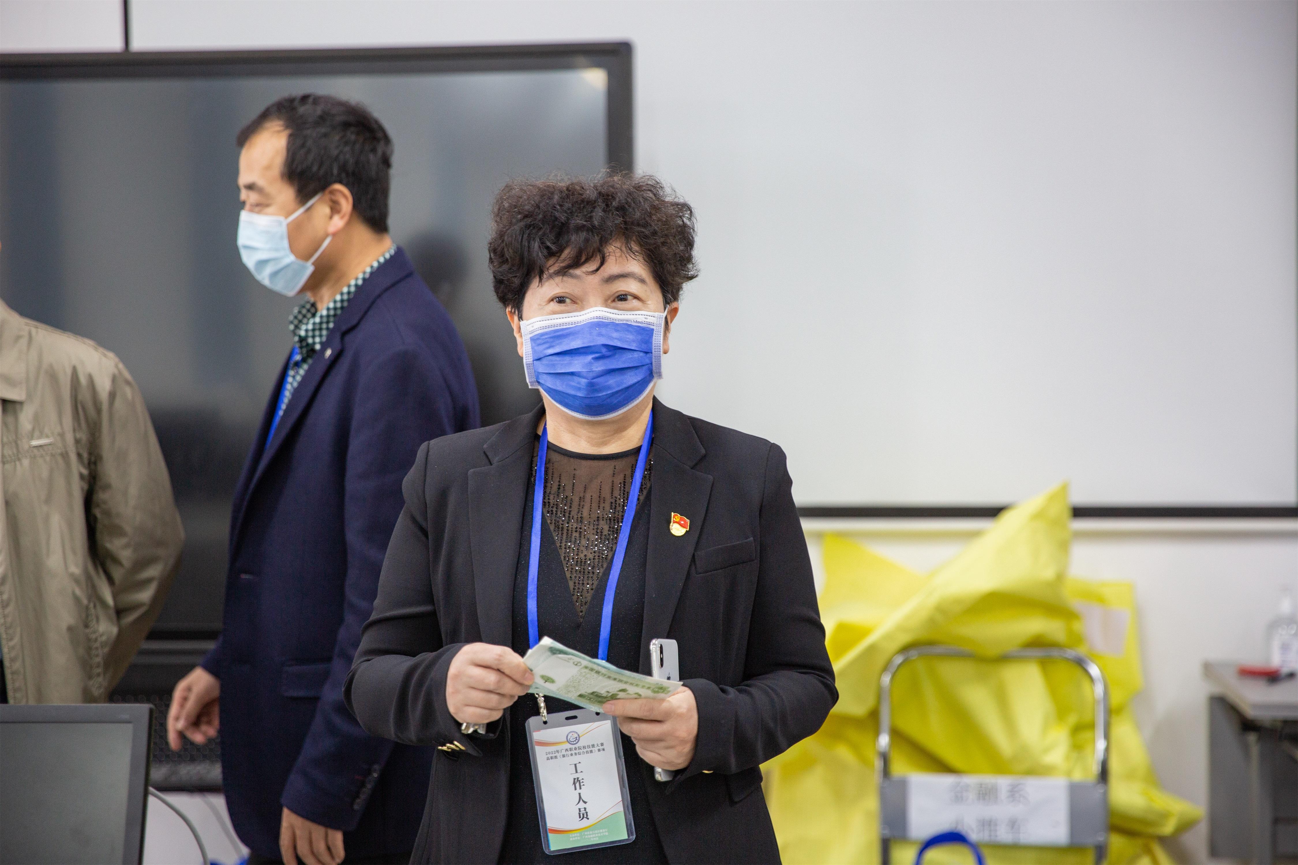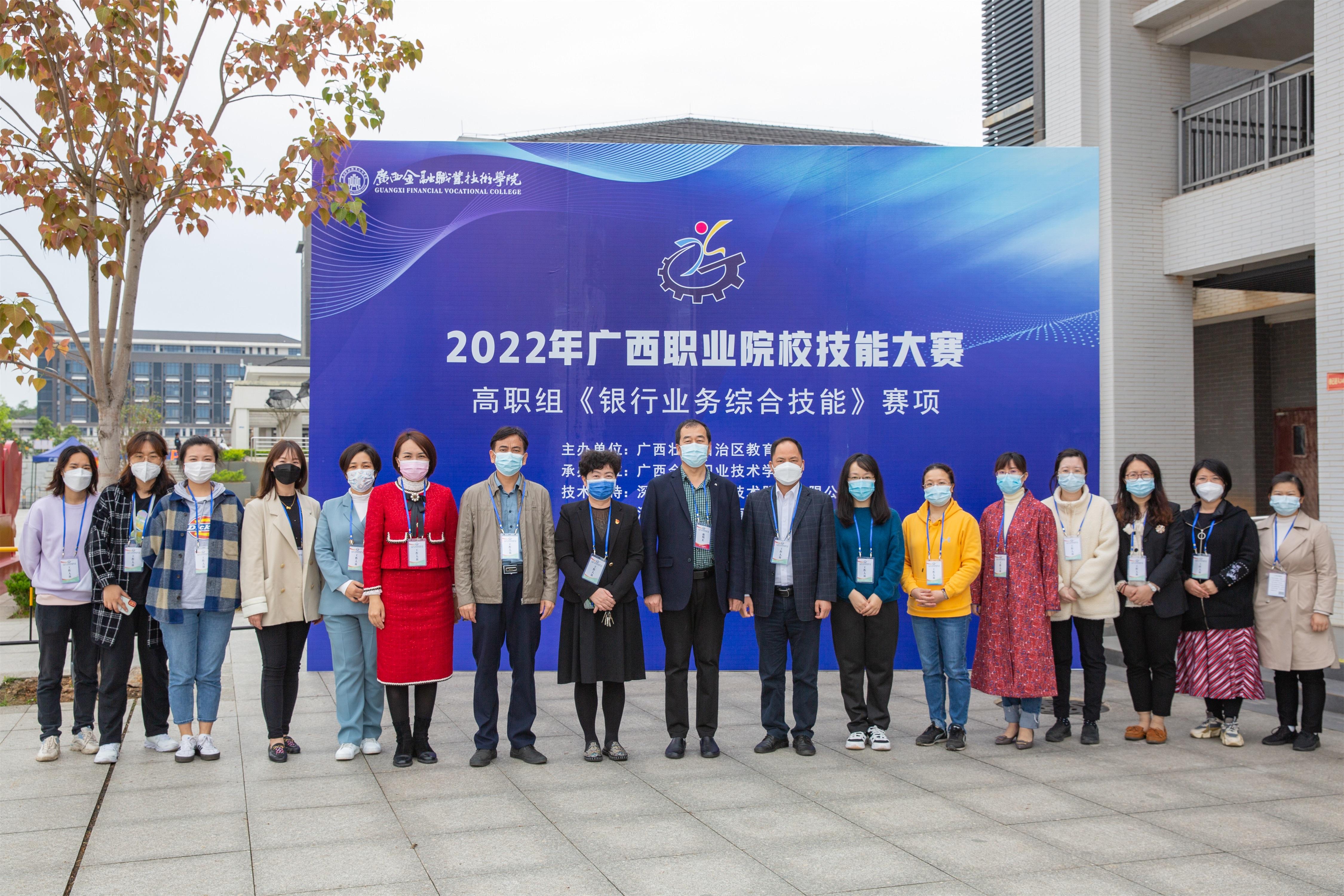 2022年4月19日广西职业院校技能大赛高职组《银行业务综合技能》赛项在万象城官网西校区举行。万象城官网党委书记沈立君、副院长谢沛善、大赛总裁判长罗延博、金融系主任王清星以及各参赛院校师生代表参加本次赛项活动。