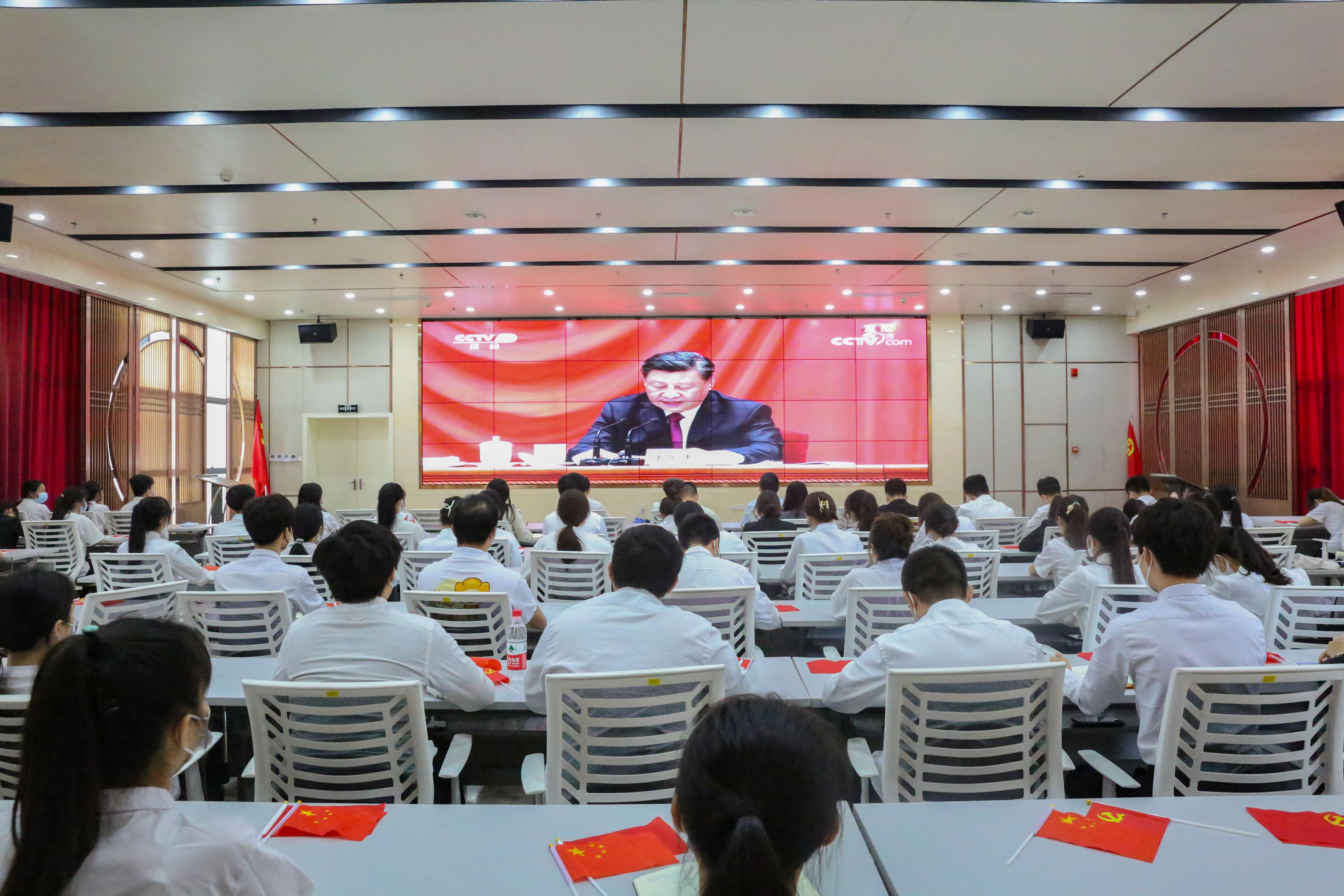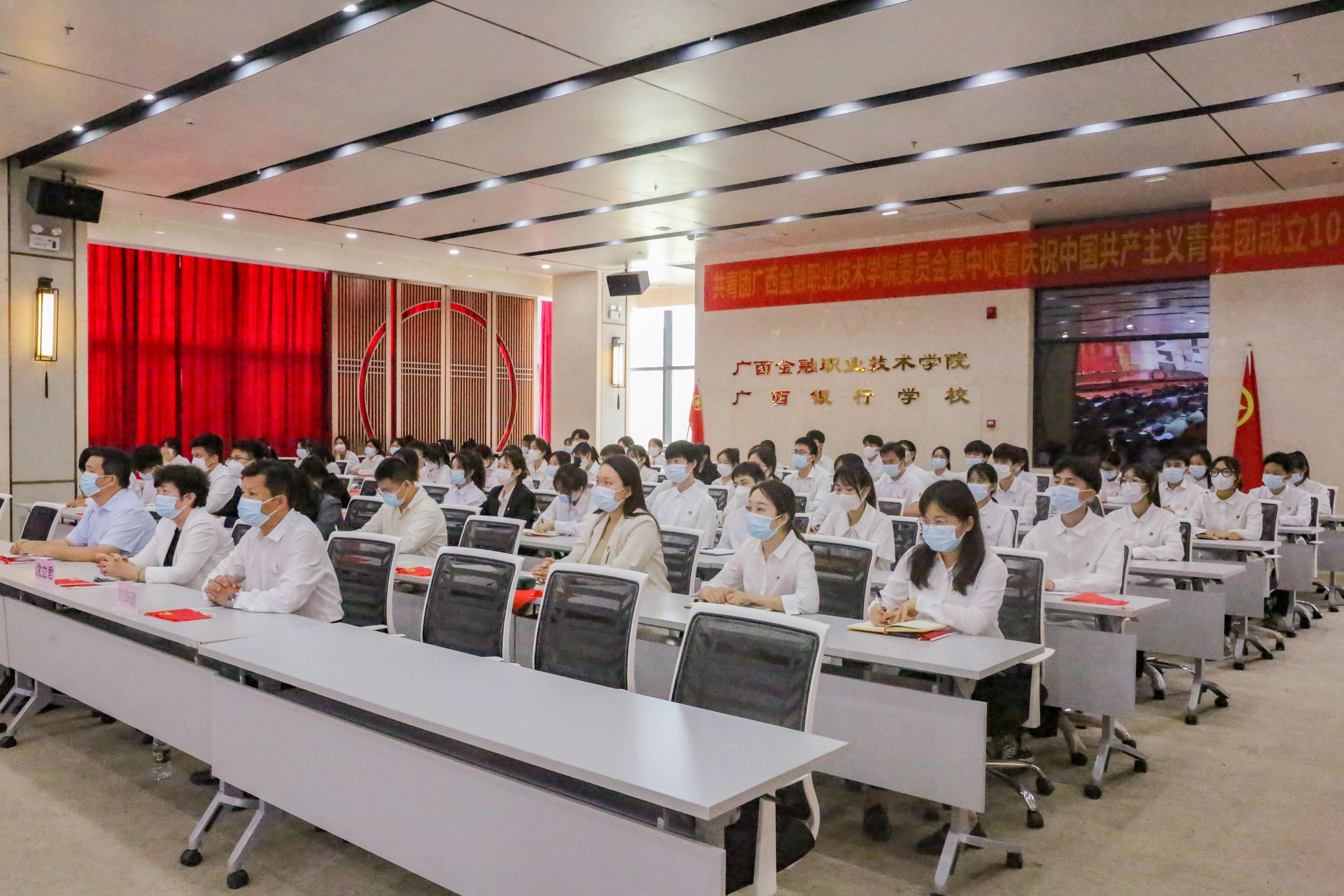 万象城官网师生在道德大讲堂集中收看了庆祝中国共产主义青年团成立100周年大会,学校党委书记沈立君,学校党委副书记、纪委书记刘华政、学校党委委员、学生工作与招生就业处副处长、校团委书记周海峰与70余名青年教师代表、各级团学组织学生代表共同收看大会直播。万象城官网6个系部组织青年教师、青年学生通过电视、网络等多种渠道认真收看大会盛况。
