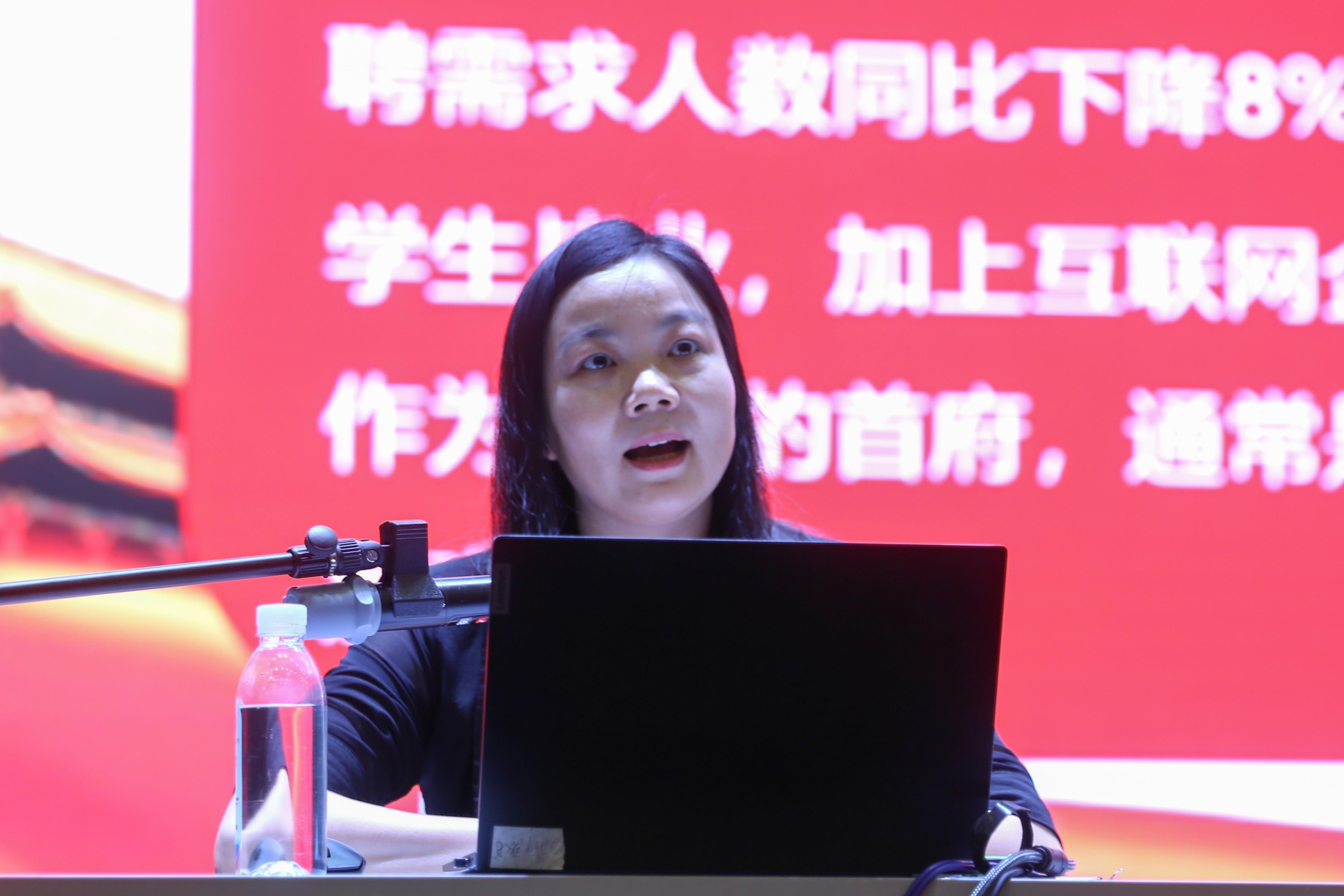 就业指导讲座会上,南宁市金融办林晓凤科长为毕业生进行了就业形势分析:由于现在疫情的影响,现在就业岗位减少,就业人数增加,大学生就业将会有一定的难度,需进一步引导毕业生树立正确的就业观,根据自身情况选择就业方向,抓紧机会,做好职业生涯规划,积极努力,坚定信念,为顺利就业做好准备。林晓凤科长用自己的亲身经历,指导金融学院毕业生如何择业,并对金融行业、地方金融组织进行了介绍及分析,为学生提供行业用人要求分析,引导毕业生做好求职准备。林晓凤科长的就业分析深刻、针对性强,生动有效,学生们受益匪浅。