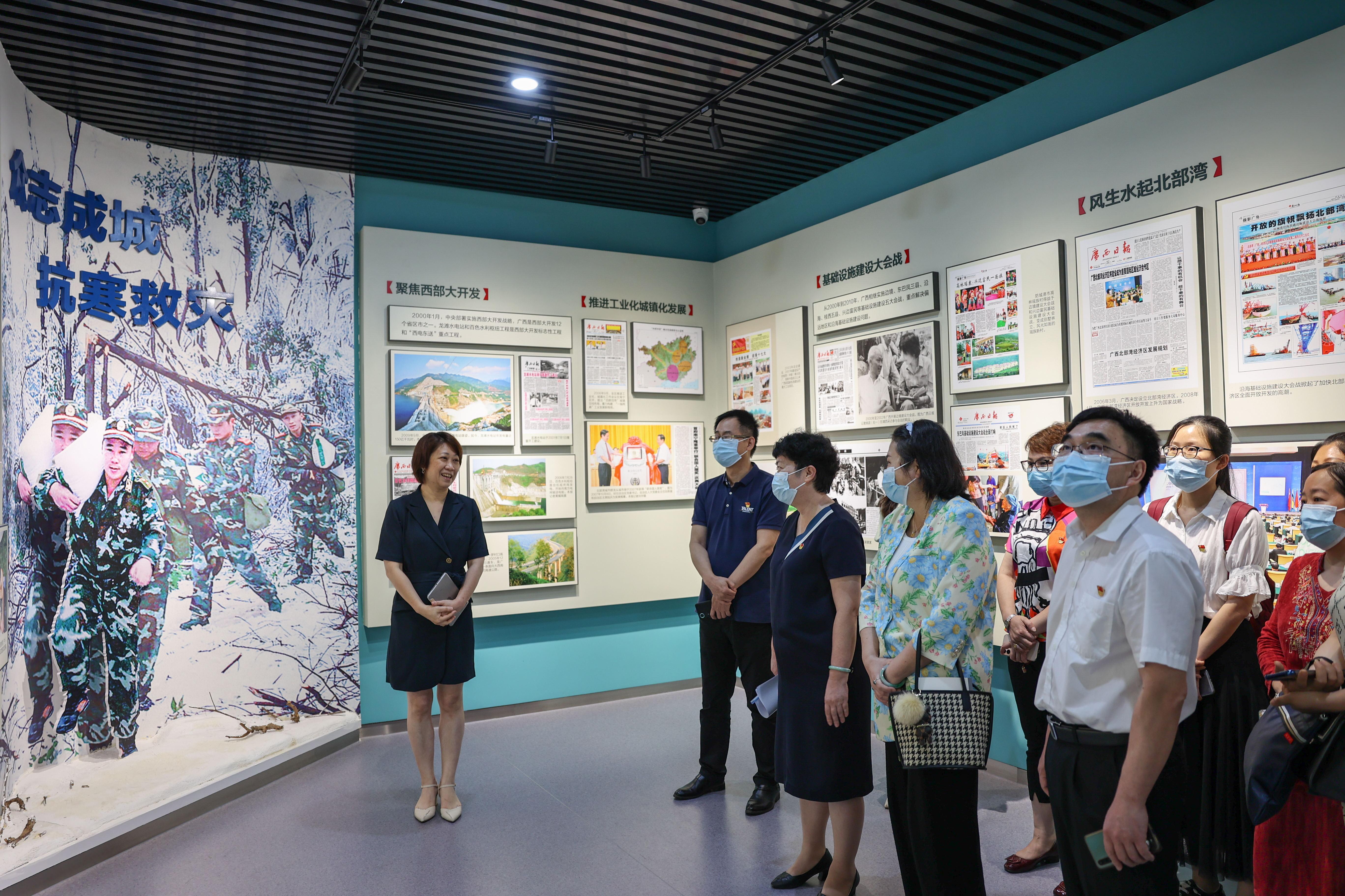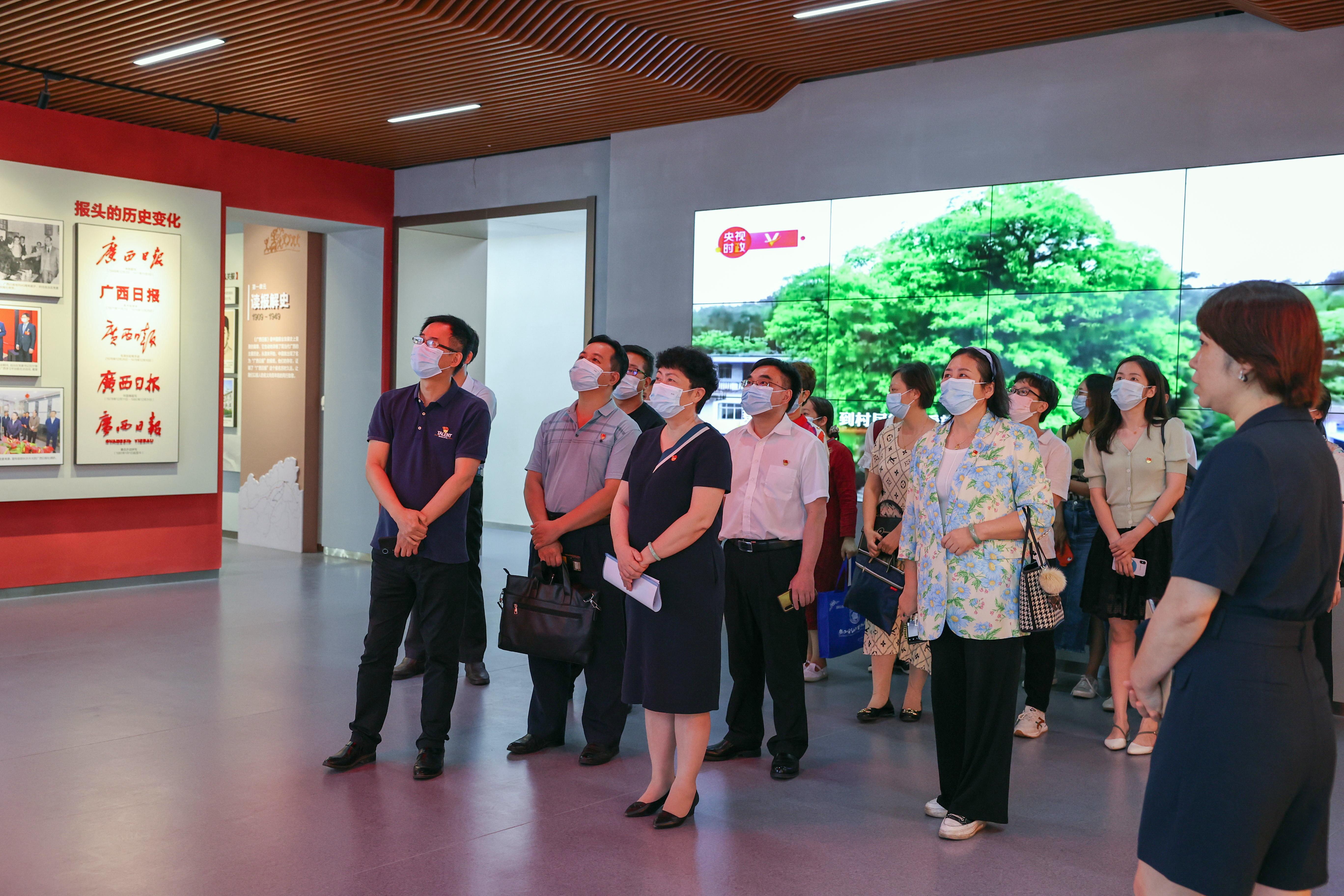 万象城官网一行在广西日报社领导的引领下先后参观了广西日报社报史多媒体展示馆,万象城官网党员同志们跟随讲解员依次参观了广西日报社报史馆12个展厅,“广西云”融媒体中心、“广西云”融媒演播厅、广西日报全媒体夜班编辑中心、“广西云”发布厅以及“广西云”指挥中心。不仅了解了广西日报的新闻传播发展史,也了解了广西在新中国成立以来发生的巨大变化,学习了融媒体传播平台的先进经验和做法,大家获益良多,思想上得到了提升。