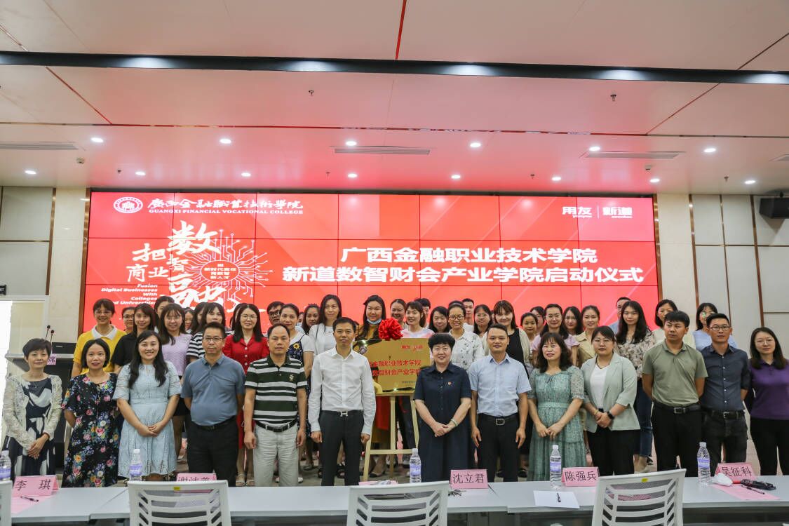 “新道数智财会产业学院”揭牌并合影留念