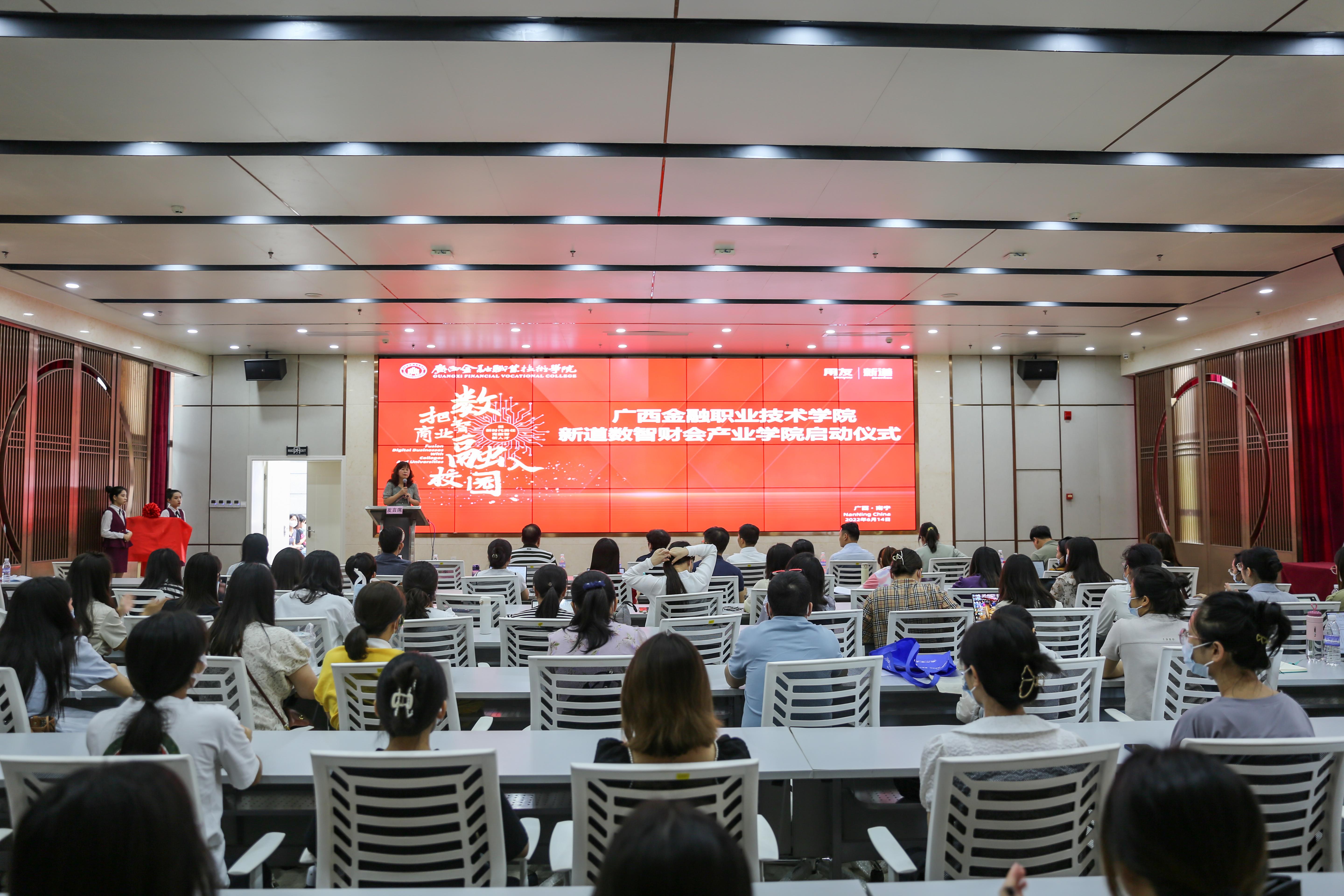 6月14日下午,万象城官网会计系与新道科技股份有限公司“新道数智财会产业学院”揭牌启动仪式在万象城官网西校区道德大讲堂举行。学校党委书记沈立君出席仪式并致辞,新道科技股份有限公司董事长兼总裁陈强兵出席仪式并致辞。仪式由会计系主任张红梅主持。