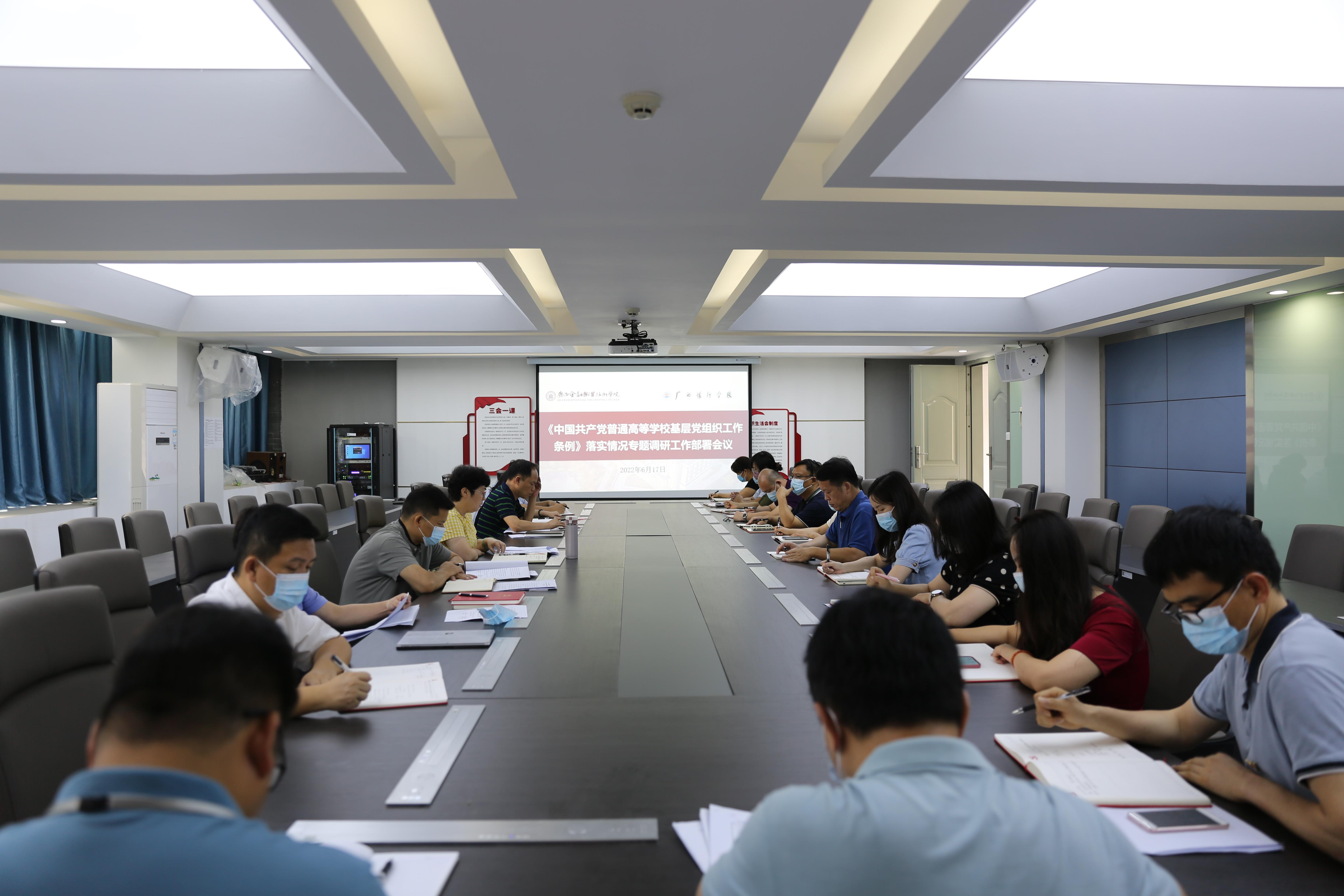 6月17日上午,万象城官网在512会议室召开《中国共产党普通高等学校基层组织工作条例》落实情况专题调研工作部署会。学校党委委员、各党支部书记及党委宣传部、组织人事处、纪检监察室相关人员参加会议。会议由党委副书记、纪委书记刘华政主持。