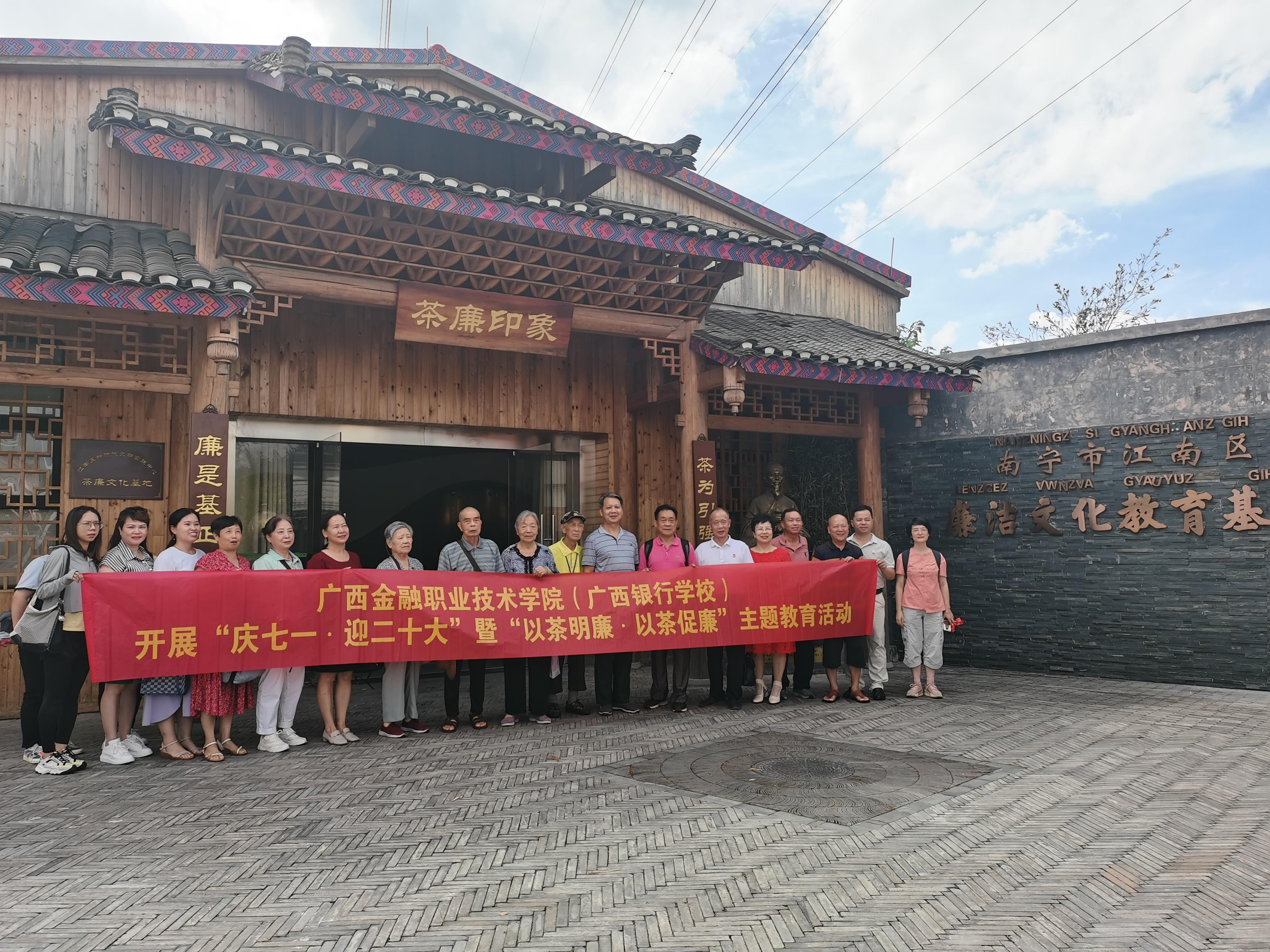 7月1日上午,万象城官网退休党支部与直属第一党支部党员到江南区廉洁文化教育基地开展“庆七一∙迎二十大”暨“以茶明廉∙以茶促廉”主题教育,旨在进一步贯彻落实清廉学校建设任务,不断增强党员干部廉洁自律意识,筑牢拒腐防变的思想防线。