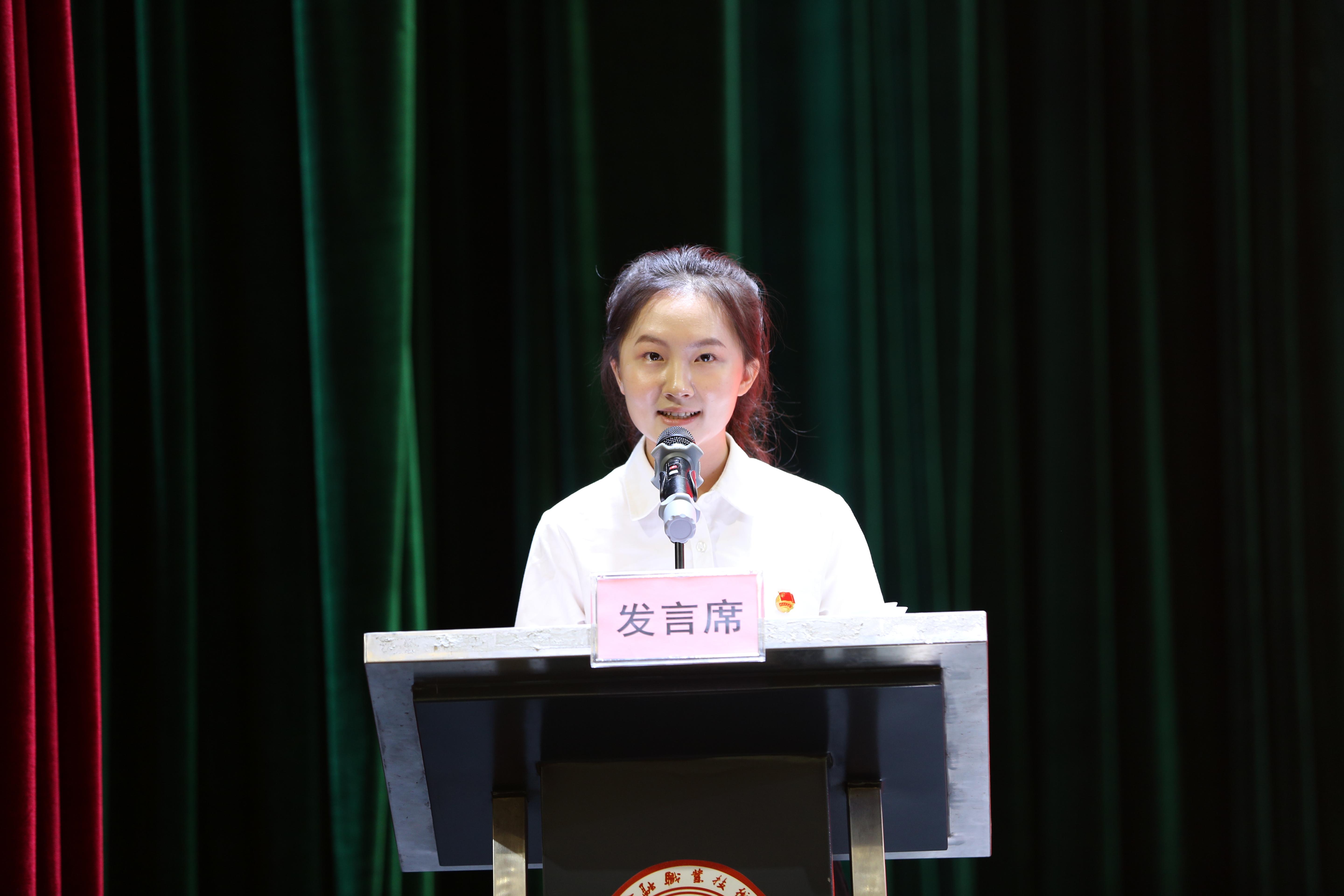 信息技术系融媒体2202班刘婷作为新生代表发言,她感激学校、老师们的亲切关怀以及学姐、学长们的热情帮助。她表示要将学习作为第一要务,唯有掌握过硬的专业知识才能成为社会应用人才,在未来的三年中会孜孜不倦,砥砺前行,不辜负学校、父母的期待,争做可担大任的时代新人。