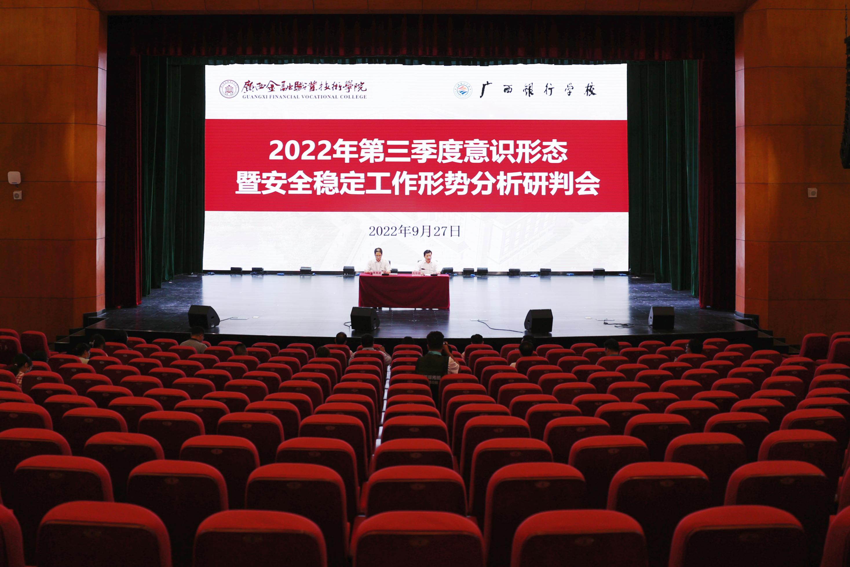 9月27日下午,万象城官网在西校区国际会议中心召开第三季度意识形态暨安全稳定工作形势分析研判会。学校领导、各党支部书记、各部门主要负责人、各系分团委专干、学生管理专干参加会议。会议由党委副书记、纪委书记刘华政主持。