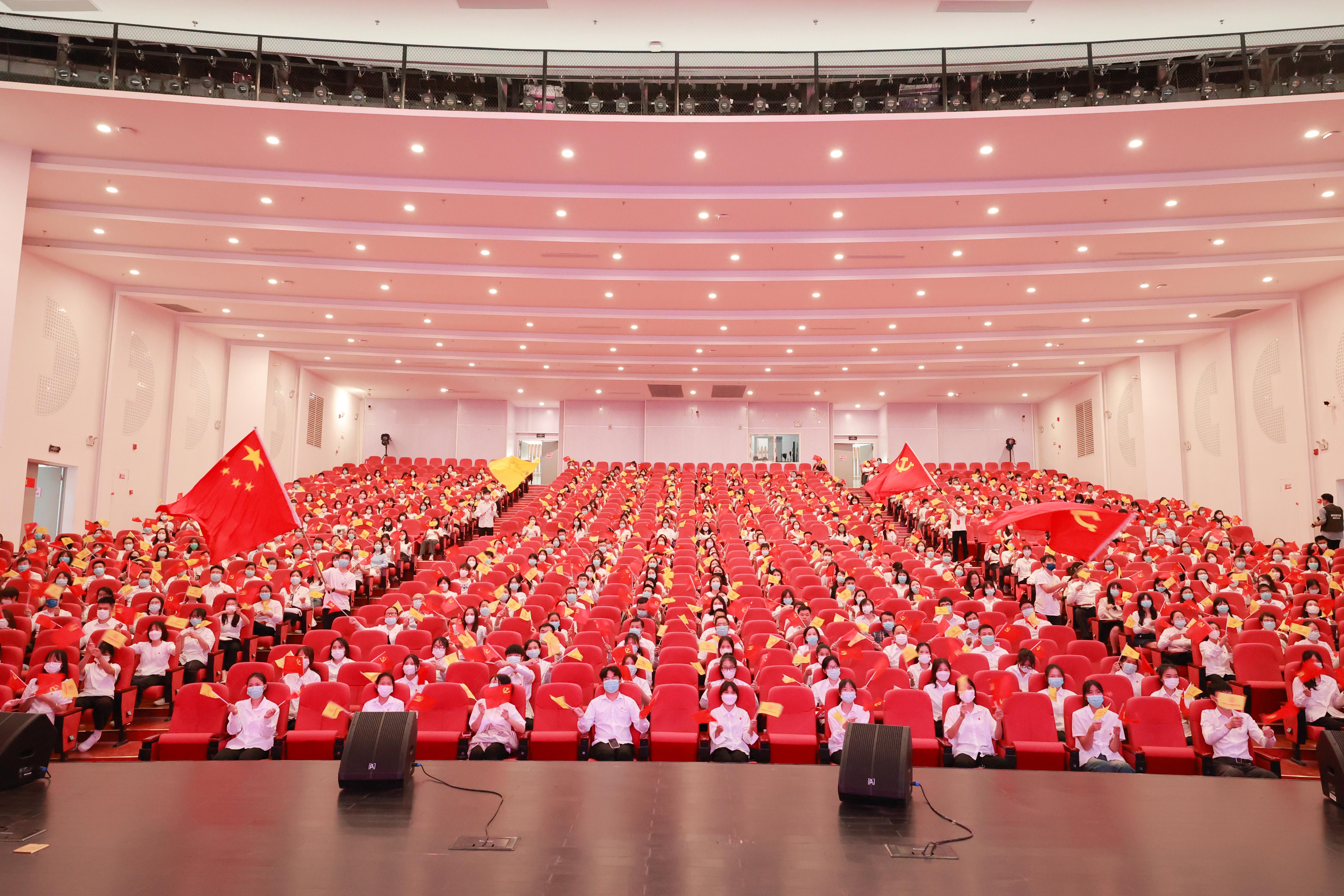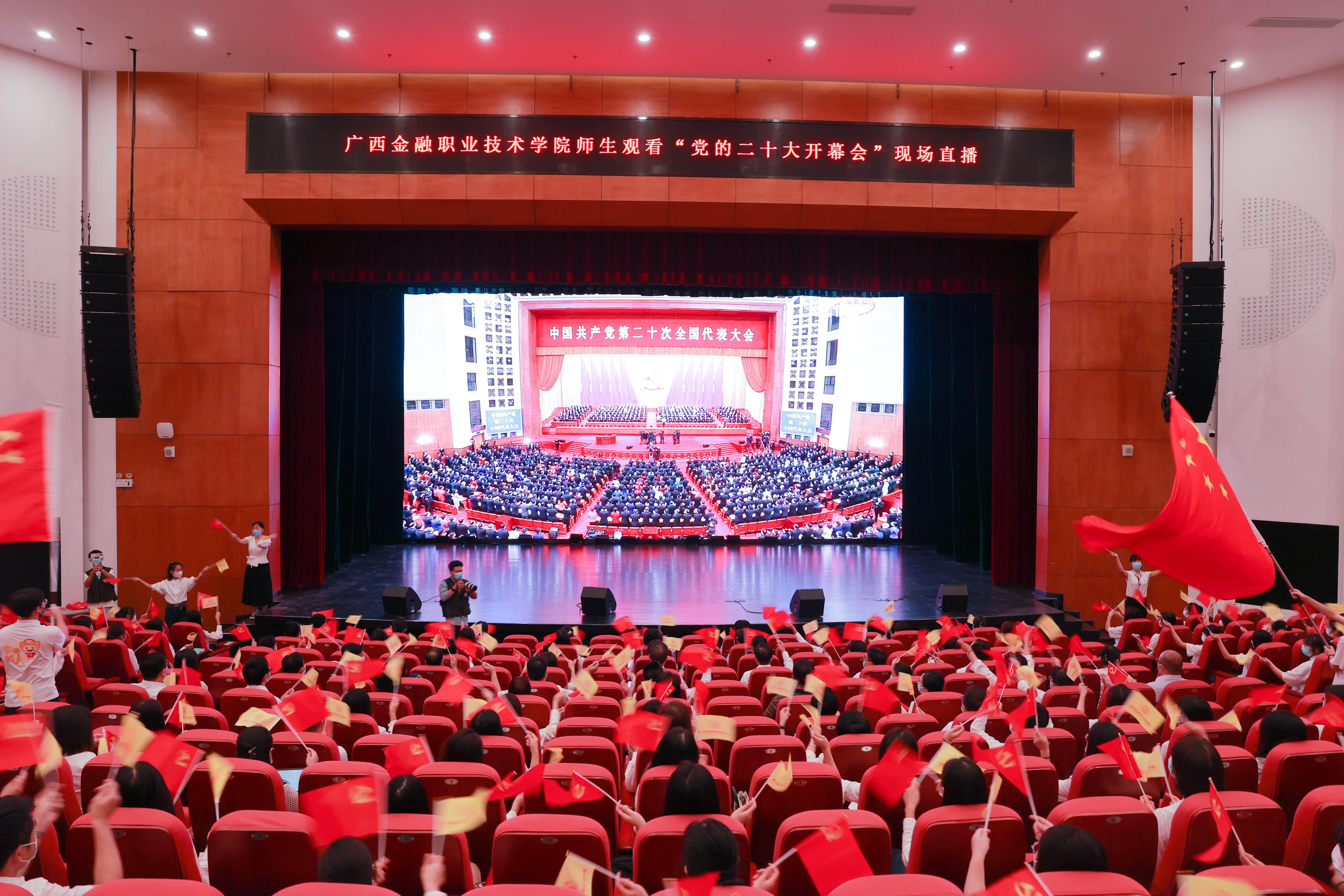 万象城官网在东、西校区设置会场集中组织收听收看中国共产党第二十次全国代表大会开幕会现场直播。学校领导、全体党员、各单位负责人及学生代表共600余人共同收看大会。会场内气氛热烈,师生们挥舞着党旗、国旗和校旗,热烈庆祝党的二十大胜利召开。