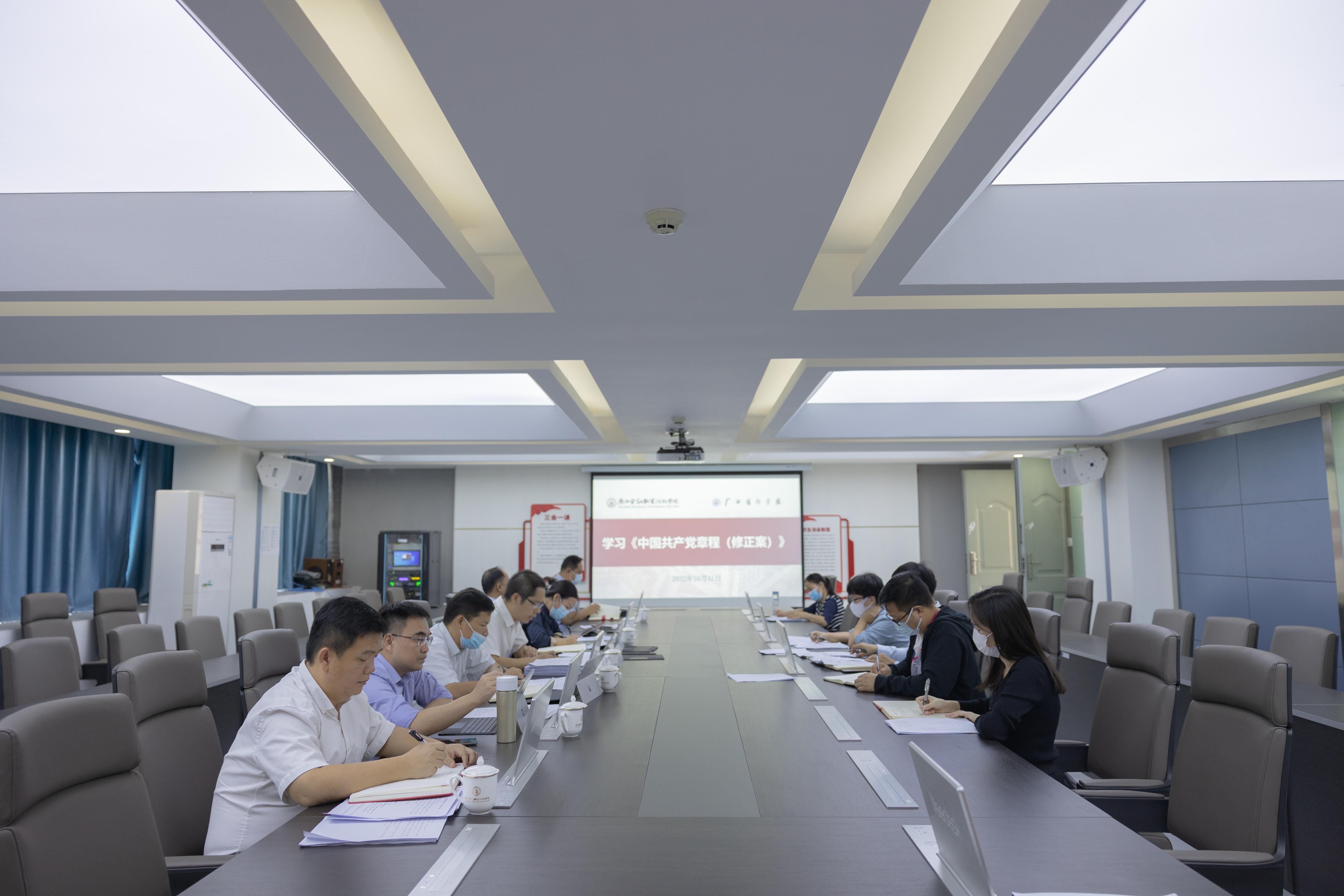10月31日上午,学校在西校区512会议室召开党委扩大会议,专题学习《中国共产党章程(修正案)》。学校领导、党委委员、党委宣传部、组织人事处、纪检监察室相关负责人参加会议。党委书记李高岩主持会议并讲话。