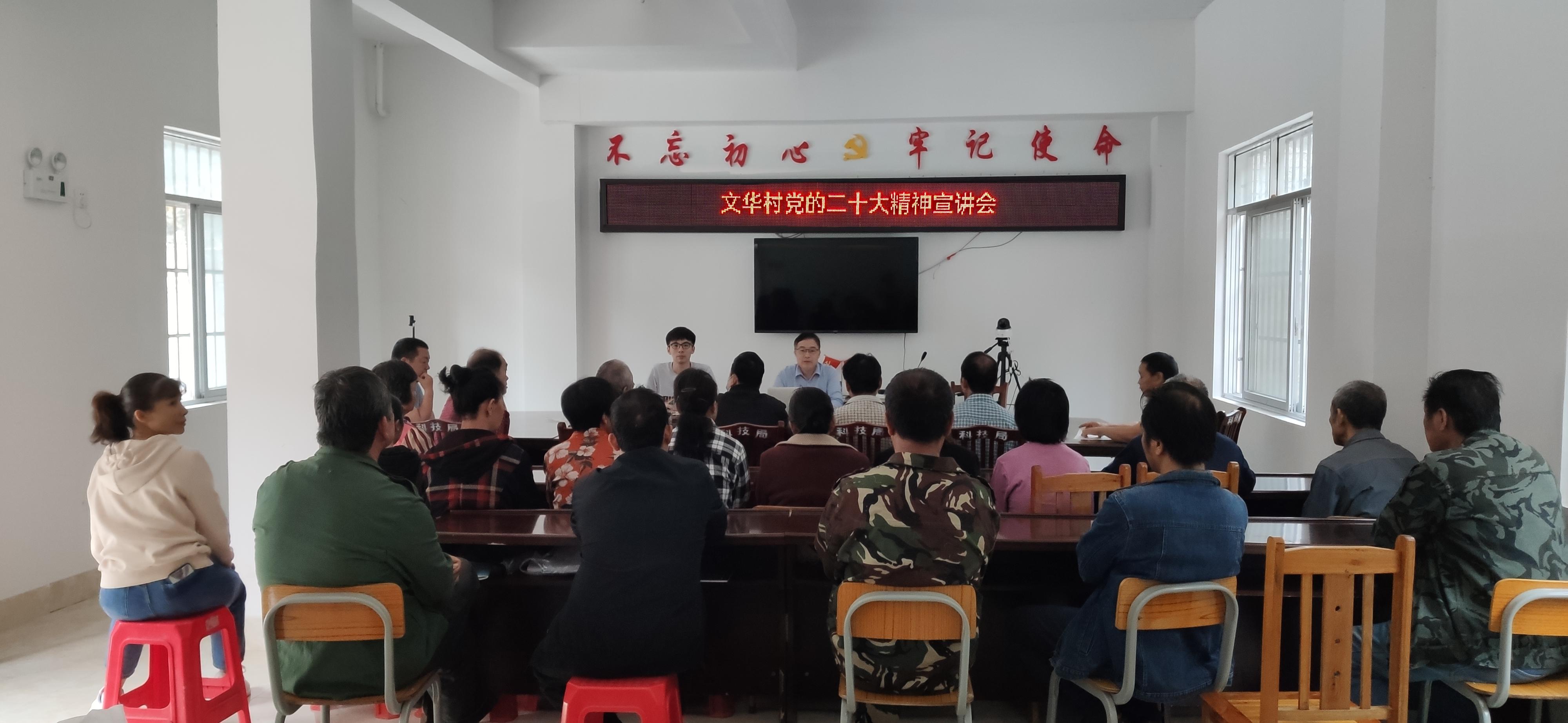 菁盛乡文华村离任第一书记刘仁礼(中)在村里向党员群众宣讲党的二十大精神