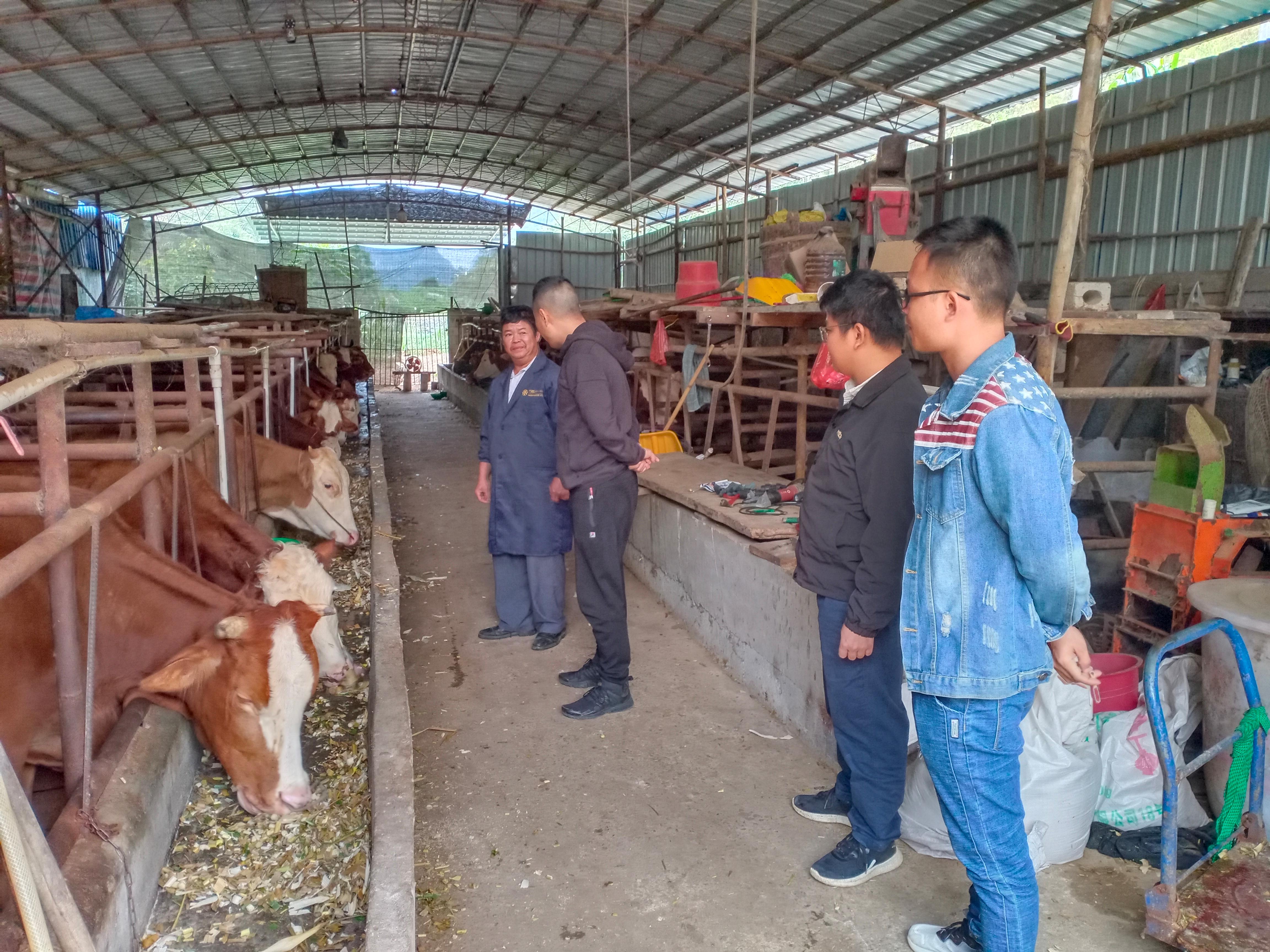 龙湾乡新民村离任第一书记蒋凯(左二)实地考察养殖大户并指导其发展规划